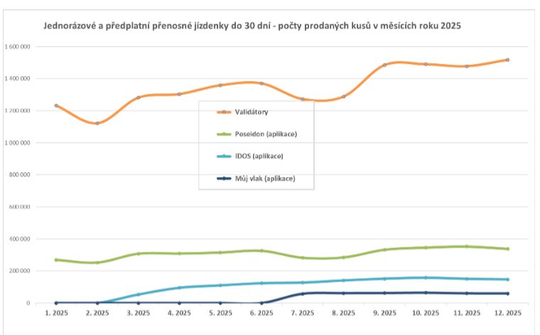 Vývoj prodejů jízdních dokladů IDS JMK v roce 2025. Foto: Kordis JMK