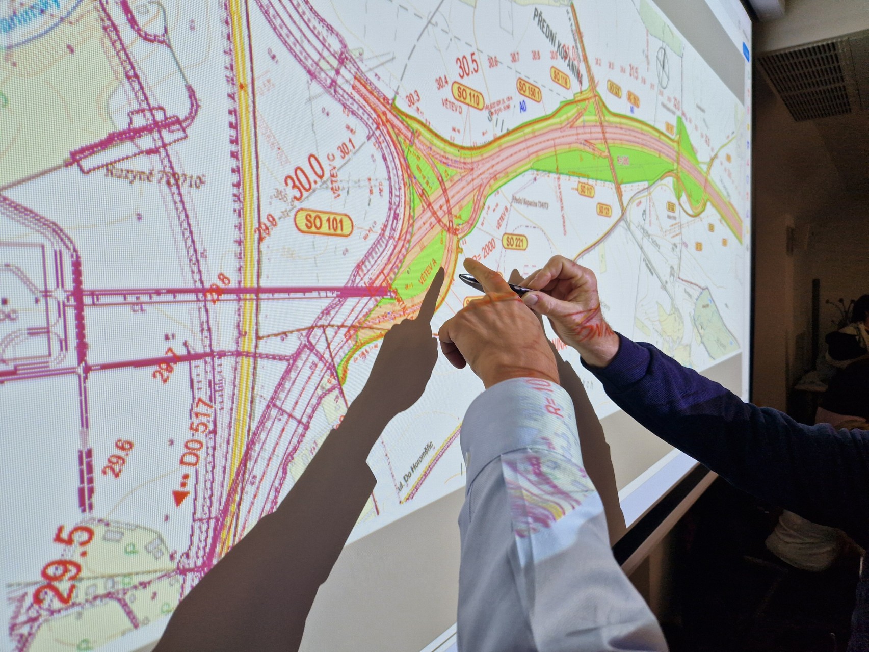 Dominika Urbanová z Pragoprojektu nicméně upozornila, že ještě může dojít k drobným změnám a úpravám. U MÚK Přední Kopanina se například na základě požadavku letiště dálniční pruhy mírně posunuly, aby auta neoslňovala letadla.