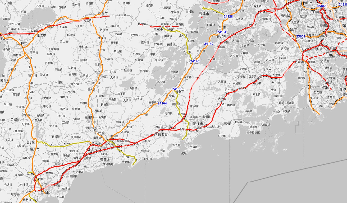 V Čan-ťiang se trať napojí na budované vysokorychlostní železniční spojení do přístavu Hepu nedaleko hranic s Vietnamem a zároveň na plánovanou vysokorychlostní železniční trať Čan-ťiang – Chaj-kchou (Haikou), která s pevninou spojí ostrov Hainan.