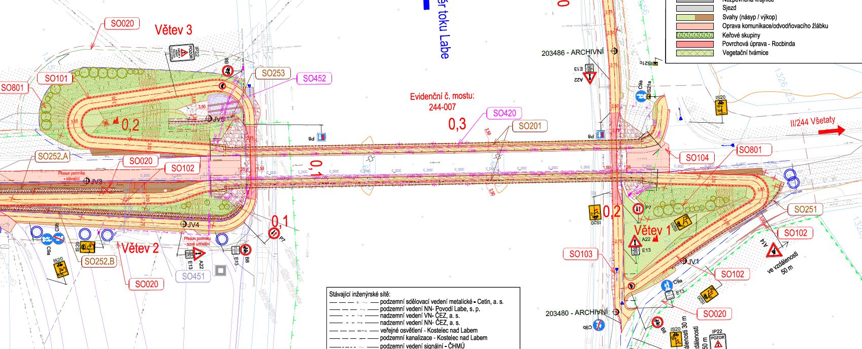 Součástí stavby je přeložka inženýrských sítí. Stavba si vyžádá zásah do stávající vozovky silnice II/244 při výstavbě zárubní zdi.