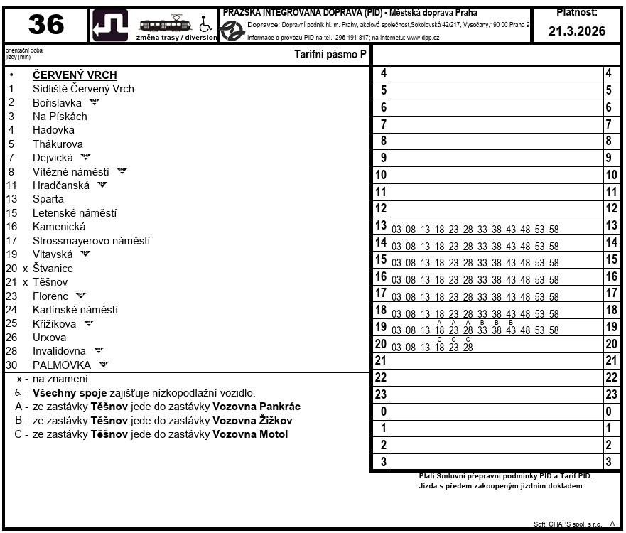 Jezdit bude na trase: ČERVENÝ VRCH – SÍDLIŠTĚ ČERVENÝ VRCH – BOŘISLAVKA – NA PÍSKÁCH – HADOVKA – THÁKUROVA – DEJVICKÁ – VÍTĚZNÉ NÁMĚSTÍ – HRADČANSKÁ – SPARTA – KORUNOVAČNÍ – LETENSKÉ NÁMĚSTÍ – KAMENICKÁ – STROSSMAYEROVO NÁMĚSTÍ – VLTAVSKÁ (na předmostí Hlávkova mostu) – ŠTVANICE – TĚŠNOV – FLORENC – KARLÍNSKÉ NÁMĚSTÍ – KŘIŽÍKOVA – URXOVA – INVALIDOVNA – PALMOVKA v ulici Zenklova – PALMOVKA (výstup v ulici Sokolovská, nástup v ulici Na Žertvách).