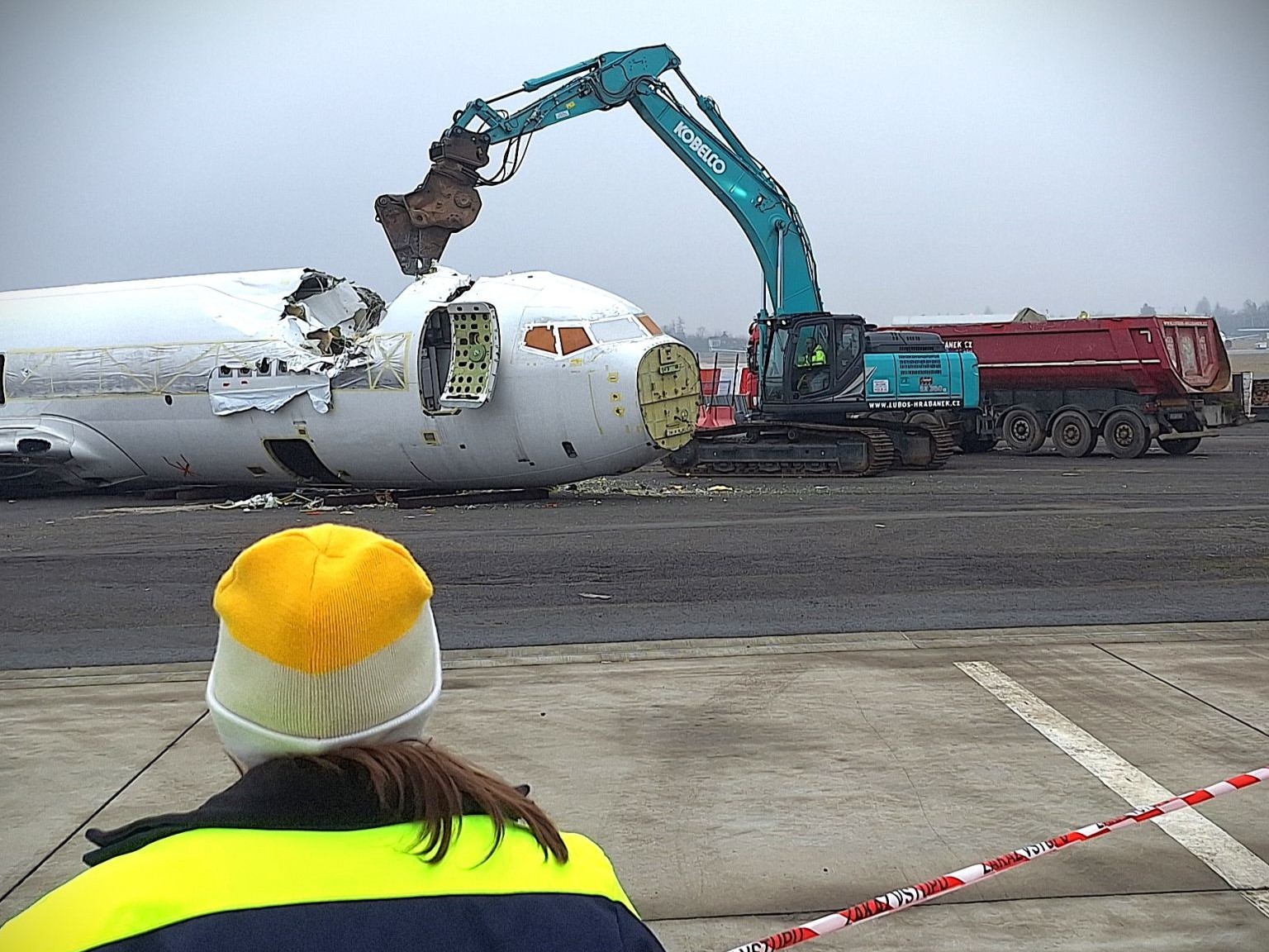 Šrotování letadla na Ruzyni. Zdroj: LinkedIn / CSATŠrotování letadla na Ruzyni. Zdroj: LinkedIn / CSAT