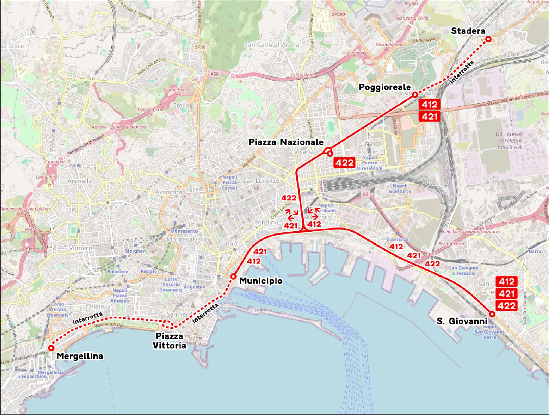 V Neapoli jezdí tramvaje na dvou tratích o celkové délce necelých 12 kilometrů. Neapol je pořizuje na novou desetikilometrovou trať Tram del Mare. Umožní propojení centra města se čtvrtí Mergellina.