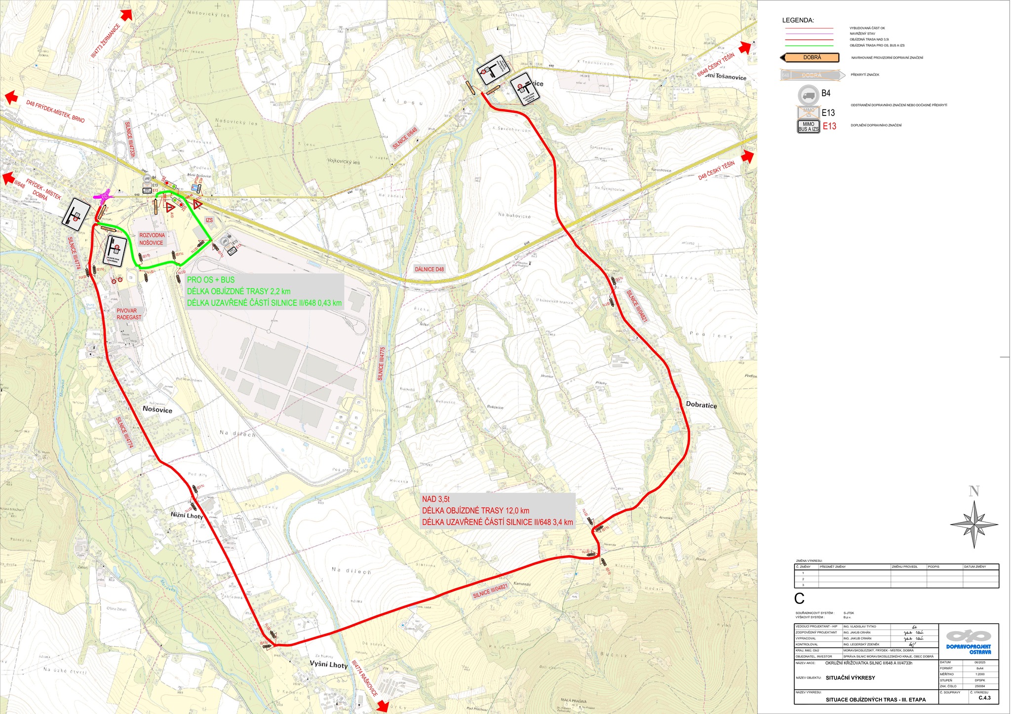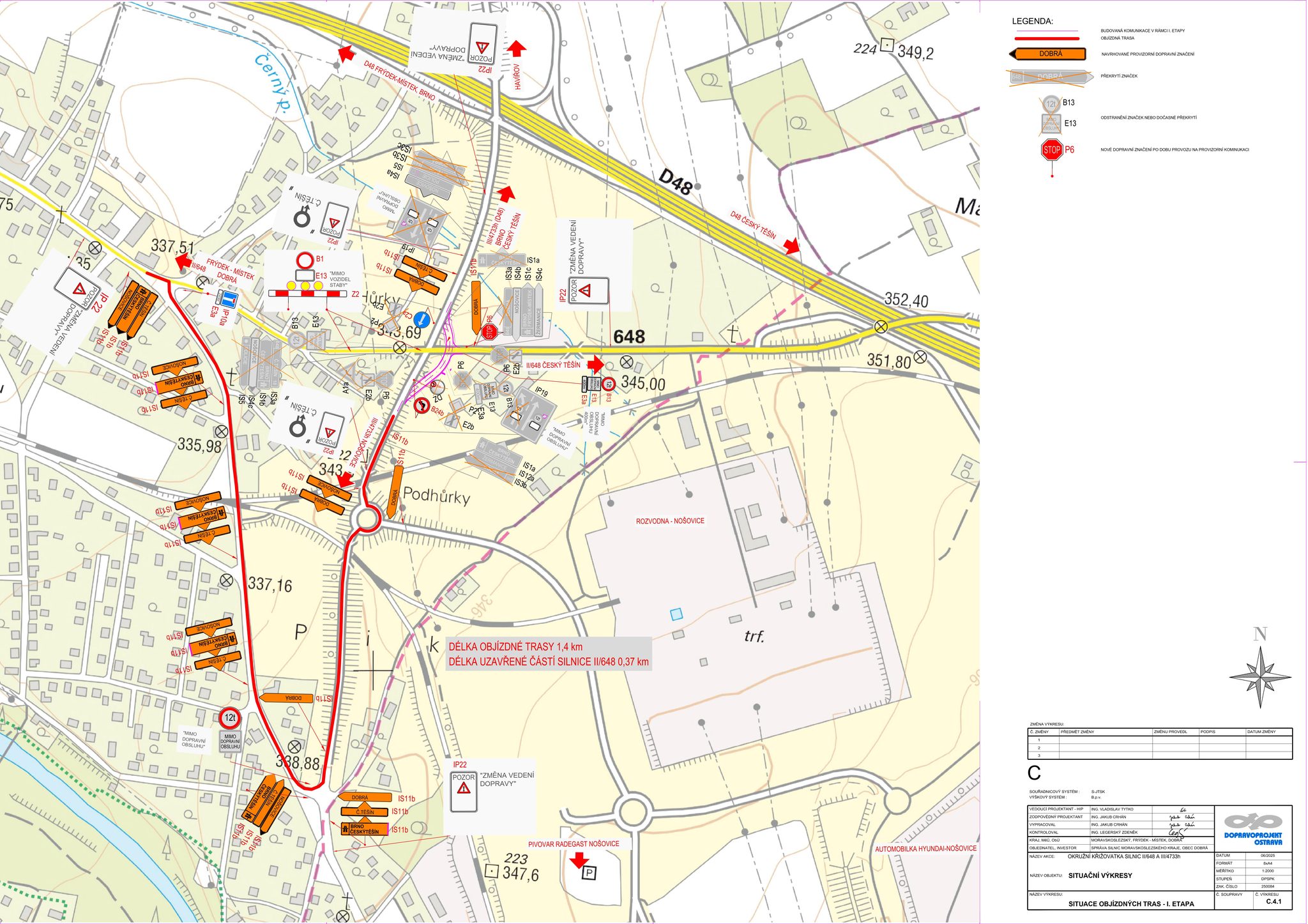 ze silnice II/648 na komunikaci k IVC Nošovice, dále kolem rozvodny Nošovice a následně je napojena na stávající okružní křižovatku na silnici III/4733h. V místě podjezdu silnice II/648, kde dochází ke zúžení komunikace na jeden jízdní pruh, bude provoz řízen dočasným světelným signalizačním zařízením. V dopravních špičkách pracovních dnů může být provoz v případě potřeby usměrňován pracovníky zhotovitele stavby.
