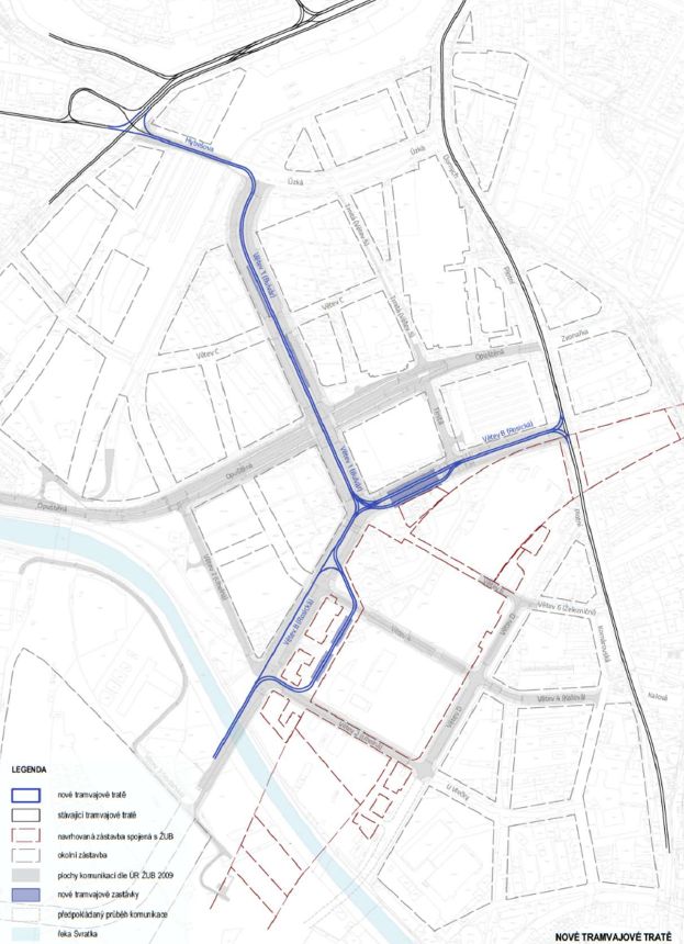 Brno zveřejnilo detailnější plány na novou síť tramvajových tratí, které obslouží budovanou rezidenční čtvrť Trnitá jižně od centra města.