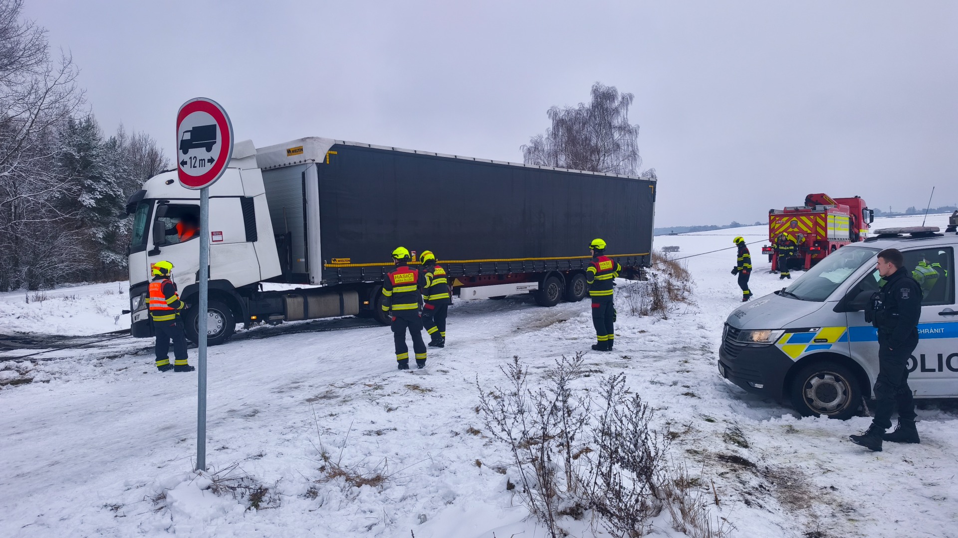 Kamion byl plně naložený, proto jeho vyprošťování trvalo delší dobu.