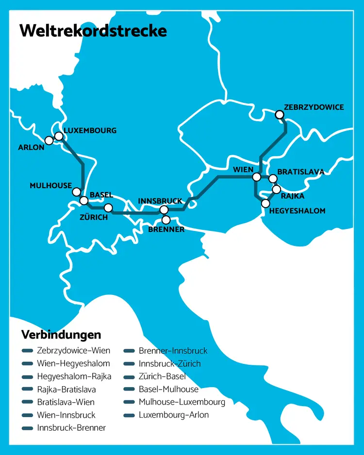 Stávající rekord platí 32 let. „Zejména přeshraniční spojení byla v posledních letech zanedbávána. Navíc prodej jízdenek zůstává složitý. Naše cesta vyžaduje sedm různých jízdenek,“ uvedl Simple Train. Firma se snaží být platformou pro jednodušší nákup jízdenek pro mezinárodní spojení.