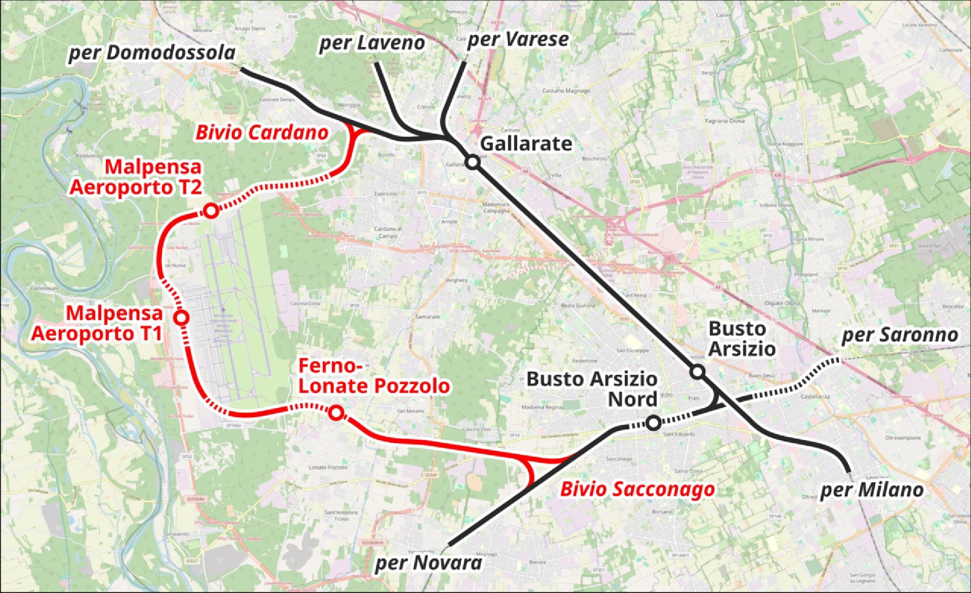 Vybudováním spojky došlo současně k zaokruhování kolejového napojení, které obsluhuje oba terminály Malpensy. 4,6 kilometru dlouhá trať je plně dvoukolejná, vede částečně v tunelu. Na dokončení ještě čeká spojka směrem do Sesto Calende ve směru k Simplonu a dál do Švýcarska.