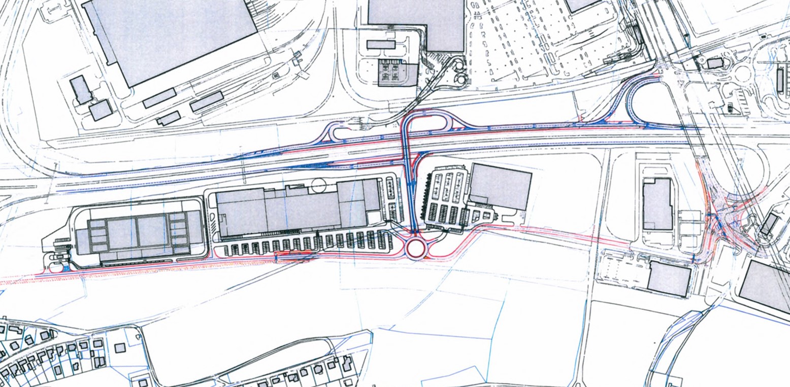 Vjezd do areálu zůstane na svém místě, součástí projektu bude nové napojení na Rozvadovskou spojku. Nynější pěší přístup od metra nahradí nová lávka, podchod pod Řevnickou zůstane zachován.