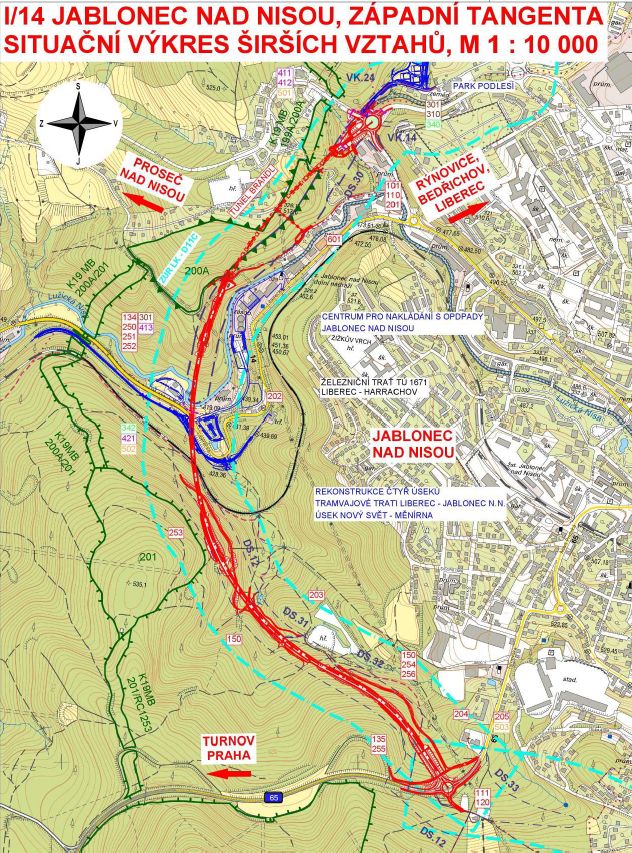 Letité plány na stavbu obchvatu části Jablonce nad Nisou doznaly zásadních změn. Ředitelství silnic a dálnic (ŘSD) začalo žádat o první razítko na nové vedení jihozápadního obchvatu města, která má nově vést půlkilometrovým tunelem. Až do letošního roku počítalo, že v úseku mezi Lužickou Nisou a křižovatkou ulic Tovární a Široká povede trasa v zářezu.