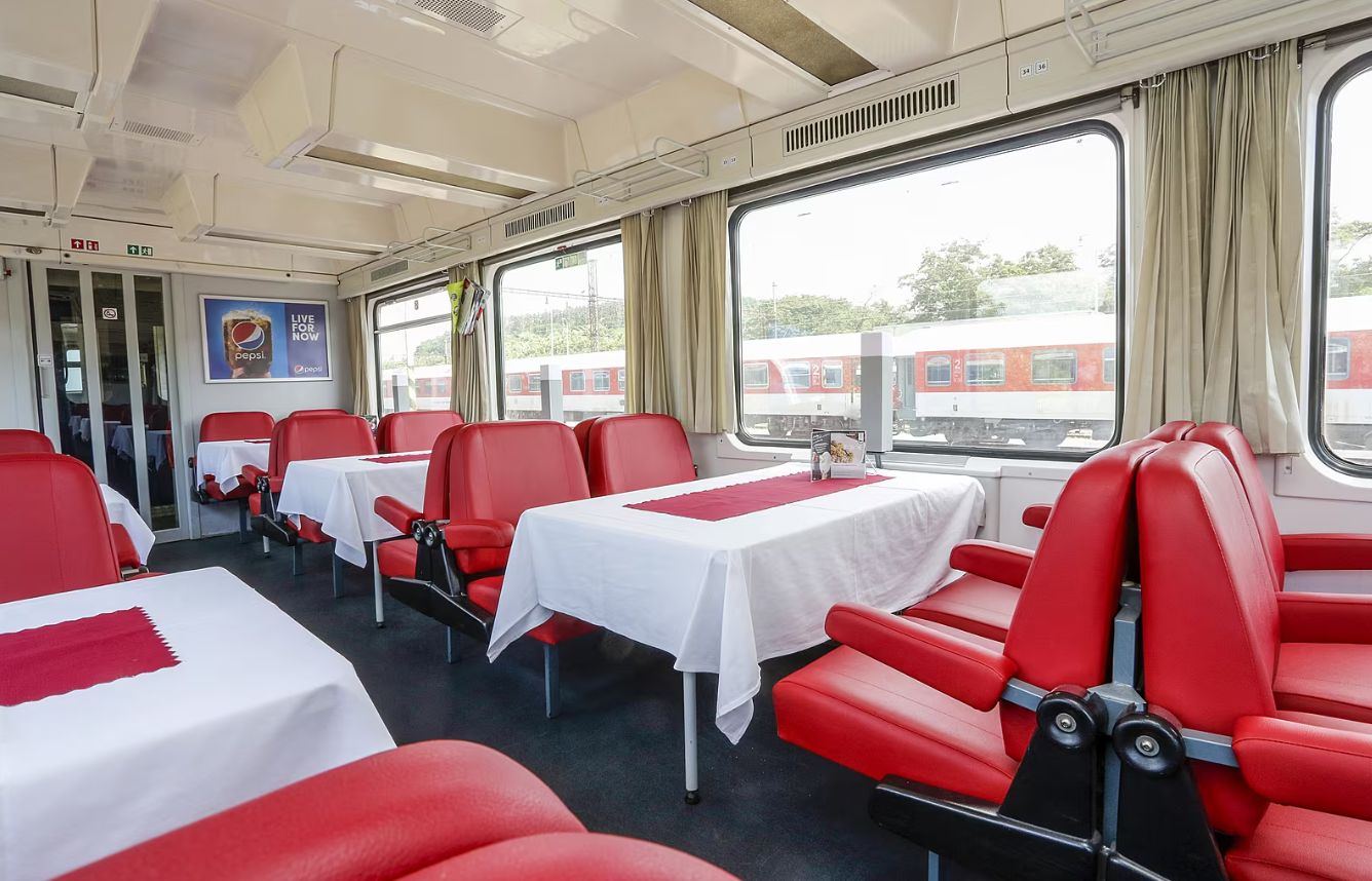 Na poslední německou jízdu vyrazil jídelní vůz WRmz815 dnes na vlaku EC 171 v 6:55 z Berlína. Od svého nástupce se liší především tím, že je celý vyhrazen restauraci. Nabízí 34 míst k sezení (včetně čtyř míst v barové části) a vysoká je i kultura stolování. Nechybějí například ubrusy.