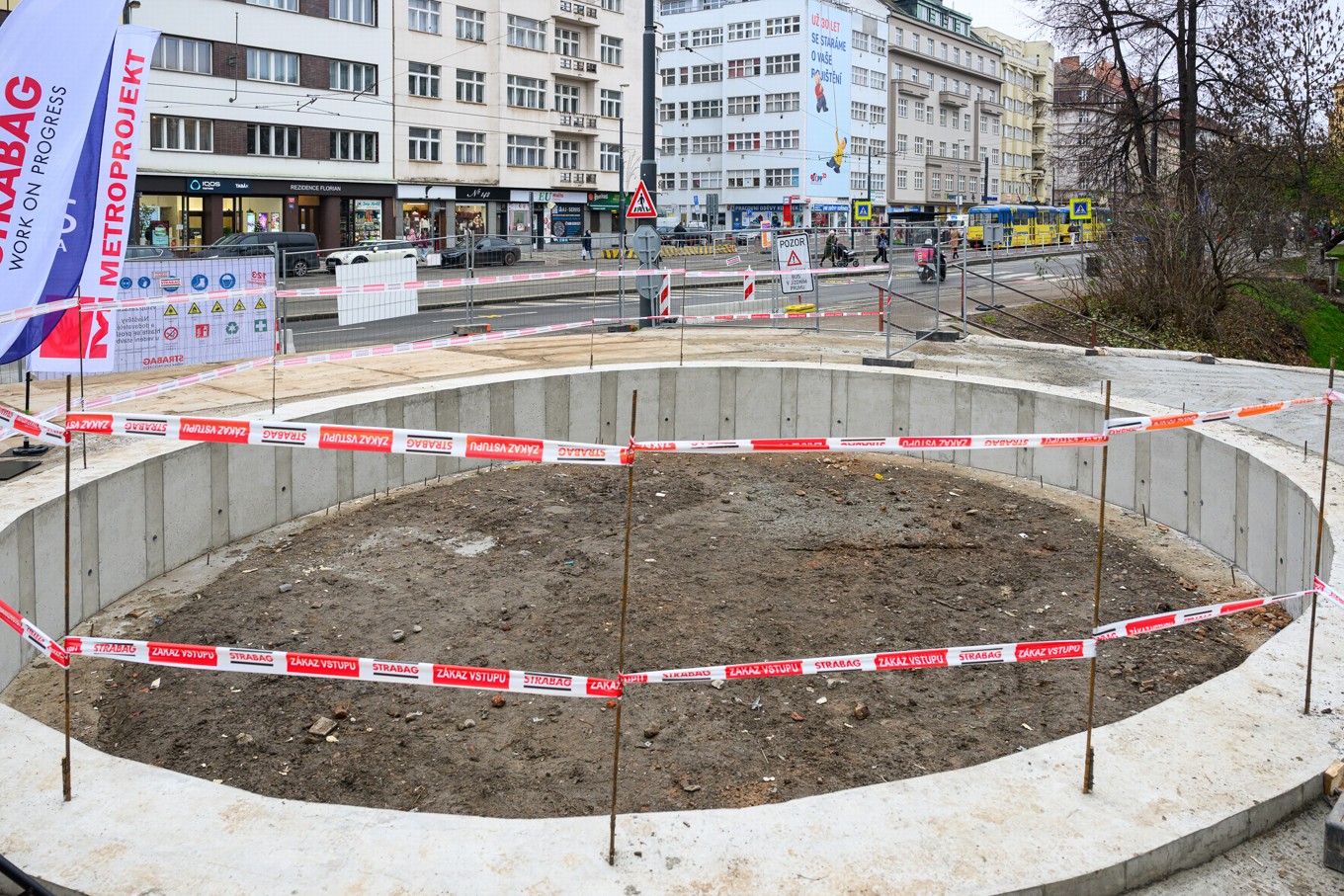 Na Floře začalo hloubení šachty pro budoucí nové výtahy do stanice metra