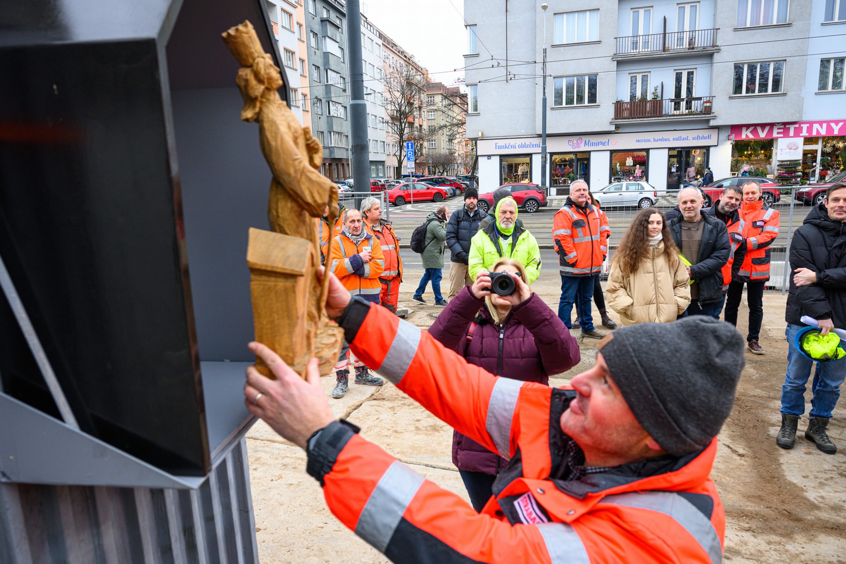kostela Nejsvětějšího Srdce Páně. Následně vedoucí projektu ražeb Aleš Teichmann uložil dřevěnou sošku do schránky na ohlubni těžní jámy, odkud bude držet ochrannou ruku nad pracemi
