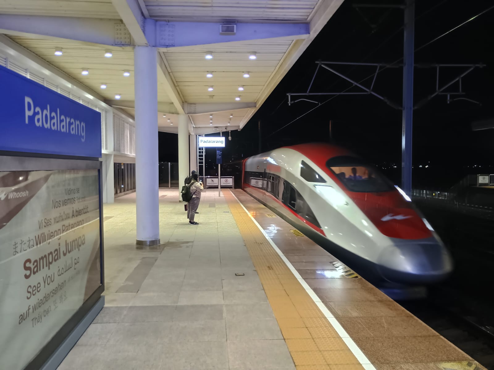 Nazpět už se ovšem těšíme na Whoosh. Tak se nazývá indonéský rychlovlak, který se vedle Číny aktuálně pyšní nejvyšší provozní rychlostí na světě až 350 km/h. Však je to čínský projekt. Trasa je zatím relativně krátká, mezi předměstím Bandungu (stanice Padalarang) a Jakarty (stanice Halim) měří 100 km, s prodloužením k depu Tegalluar celkem necelých 150 km.