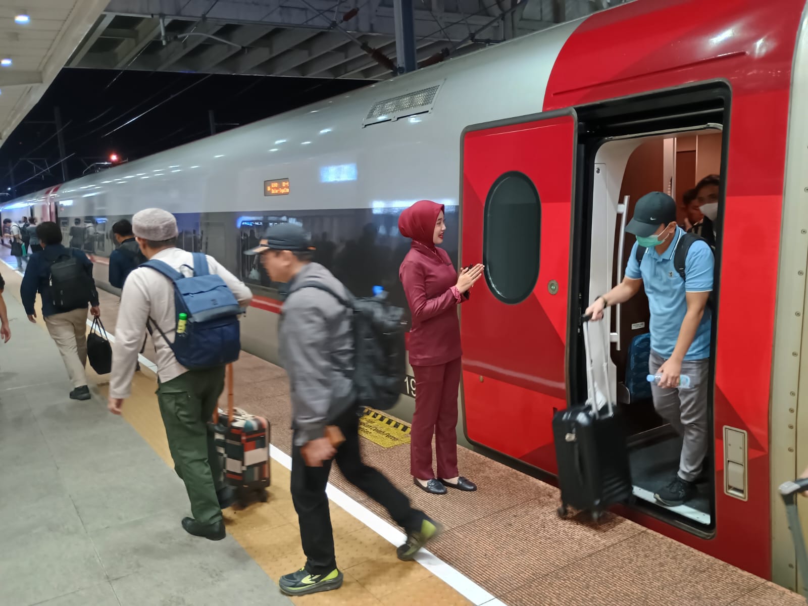 Průvodčího zastoupí turnikety na nádraží, předtím musí bagáž projít rentgenem, ale není to tak přísné jako na letištích, tekutiny nejsou problém. Whoosh má pestrou nabídku „merche“ – na „let“ indonéským rychlovlakem si můžete později zavzpomínat v čepici, triku, mikině nebo třeba s termoskou s číslovou 350.