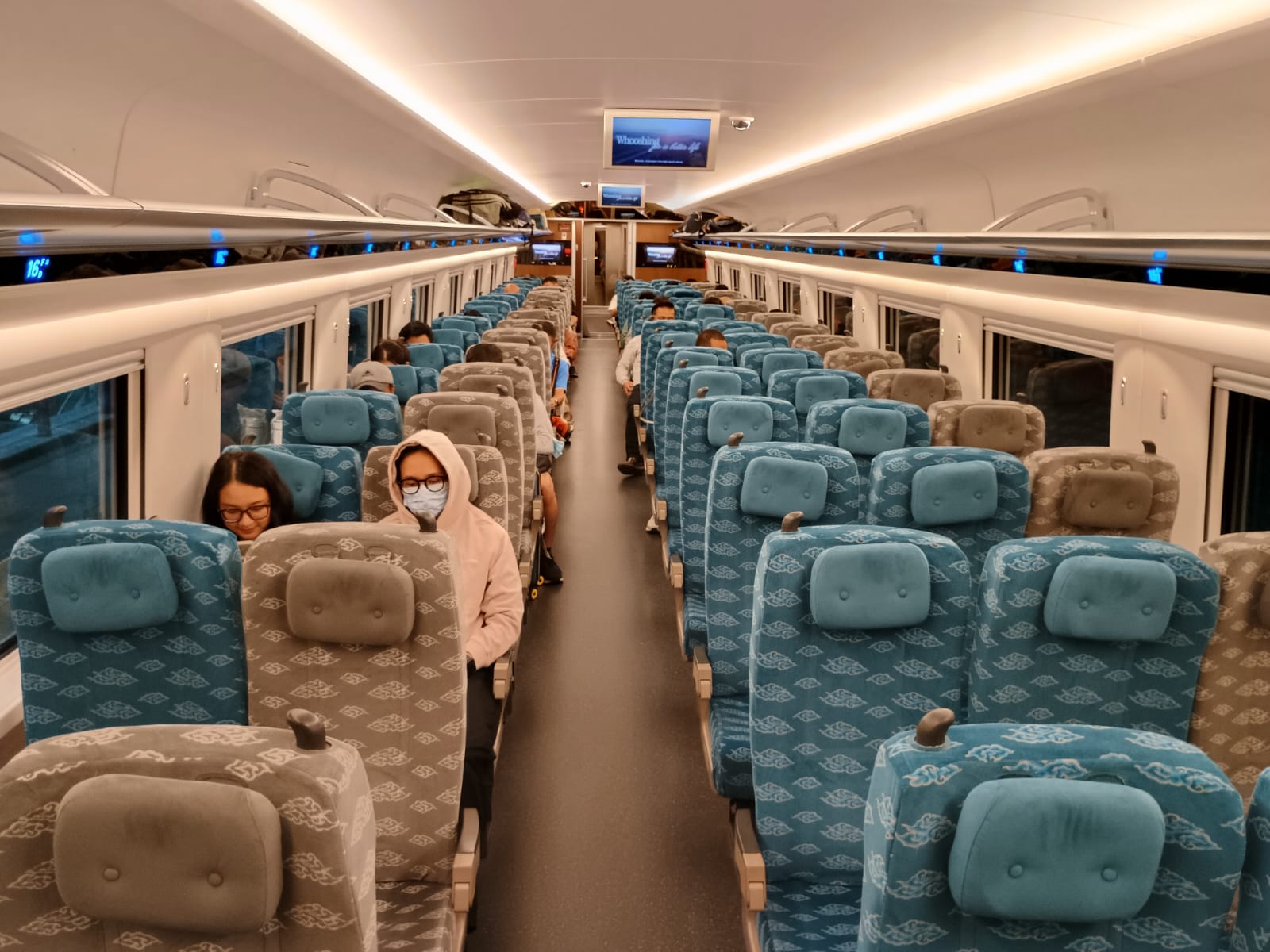 Tu stovku kilometrů prolétneme za pouhou půlhodinu. Na většině trati ukazuje displej cestovní tempo v rozmezí 333 až 344 km/h, zhruba na dvě minuty strojvůdce vytáhne rychlost až ke 350 km/h. Whoosh je nejen bleskově rychlý, ale taky zářivě čistý. Záhy pochopíme proč: je totiž plný uklízečů.