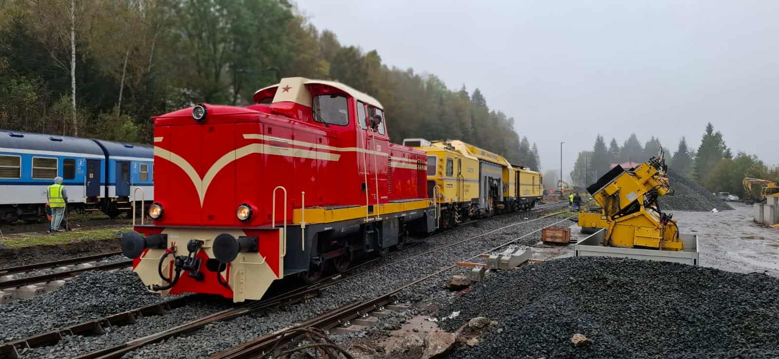 Testování výhybek v dopravně Dolní Polubný. Foto: Železniční společnost Tanvald / Facebook.comPodbíječka v Kořenově. Foto: Zdopravy.czTestování výhybek v dopravně Dolní Polubný. Foto: Železniční společnost Tanvald / Facebook.com
