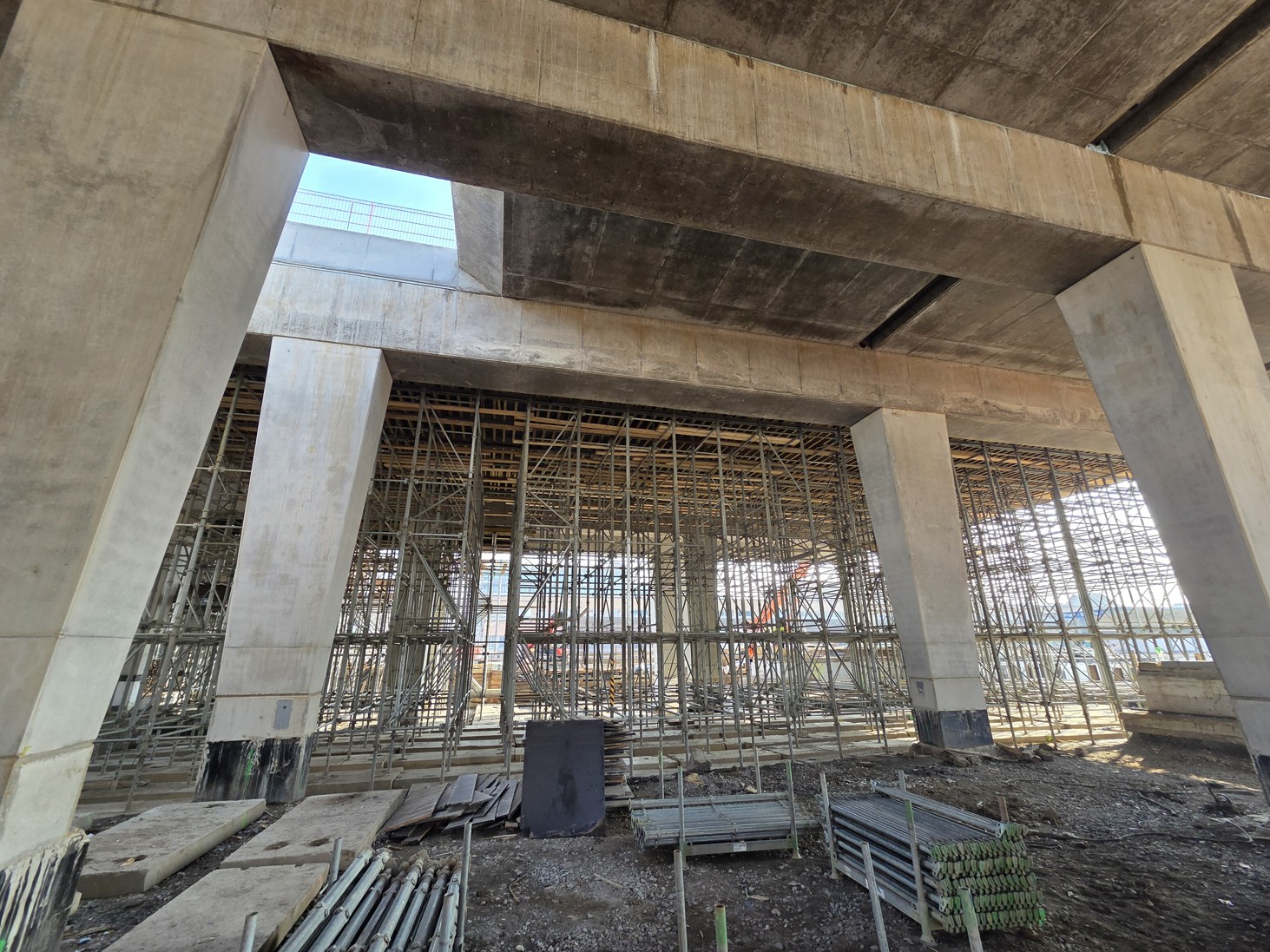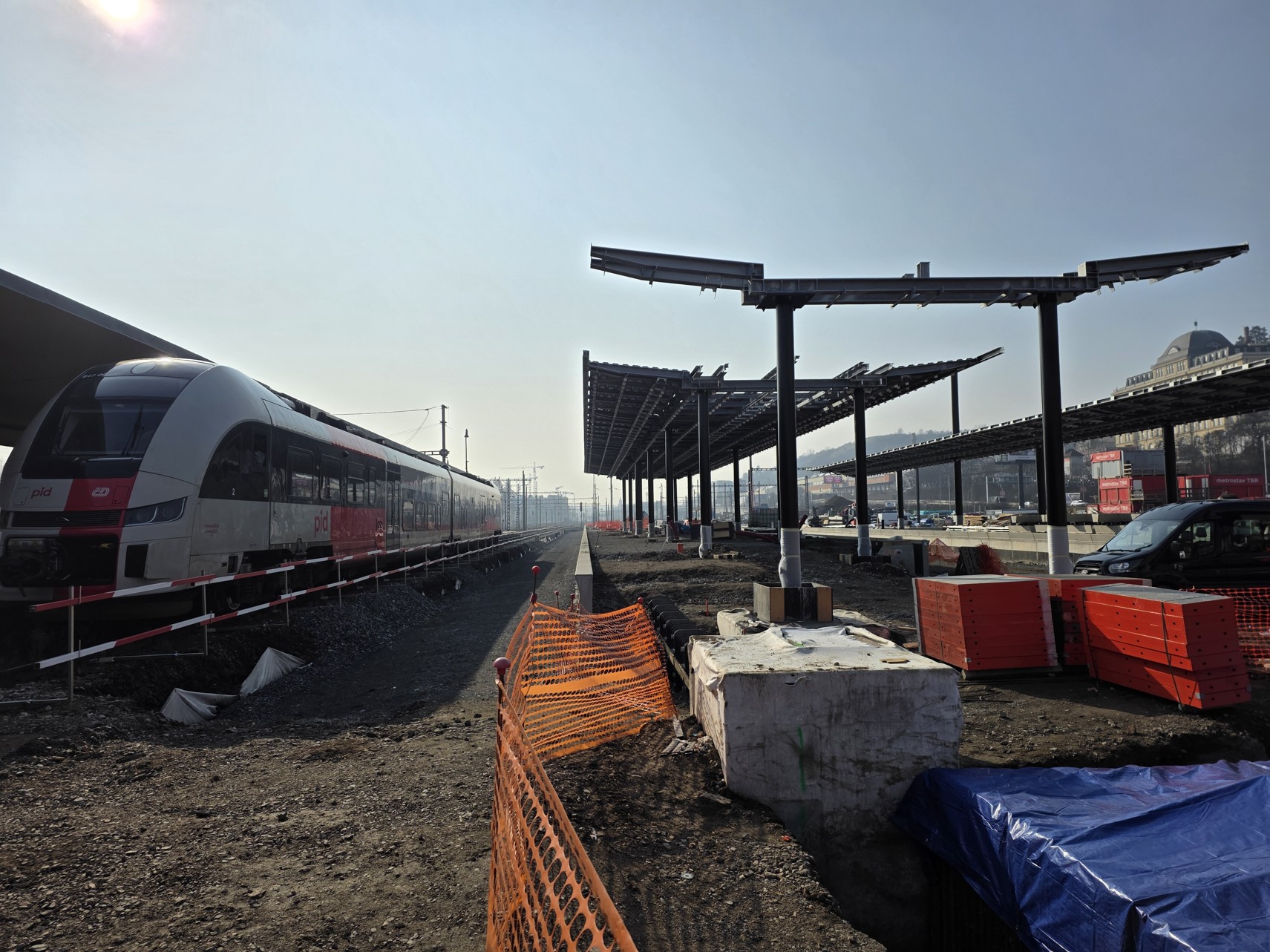 Stejně tak se buduje provizorní zastřešení budoucích podchodů, později celý prostor uzavře zmíněný terminál.