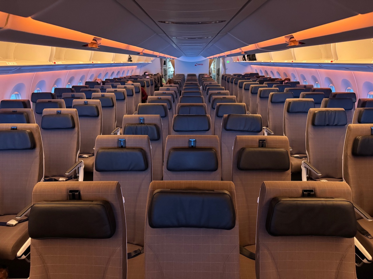 Dopravce ze skupiny Lufthansa Group označuje pořízení nového letadla jako vstup do nové éry dálkového létání. Cestující čeká i nový koncept interiéru se čtyřmi různými třídami Swiss Senses. V první třídě jsou 4 místa, 45 sedaček je v byznys třídě, 38 míst v premium economy, do ekonomické třídy se vejde 156 lidí.