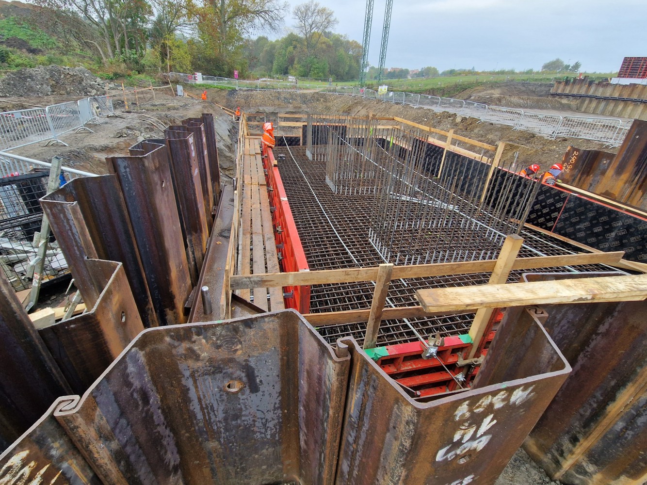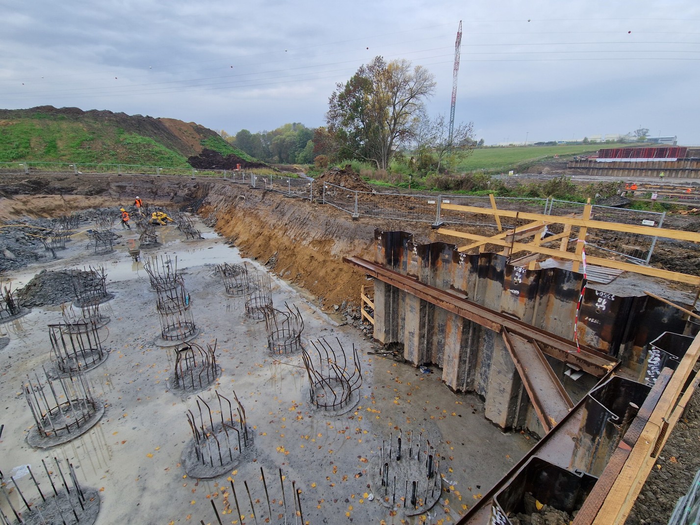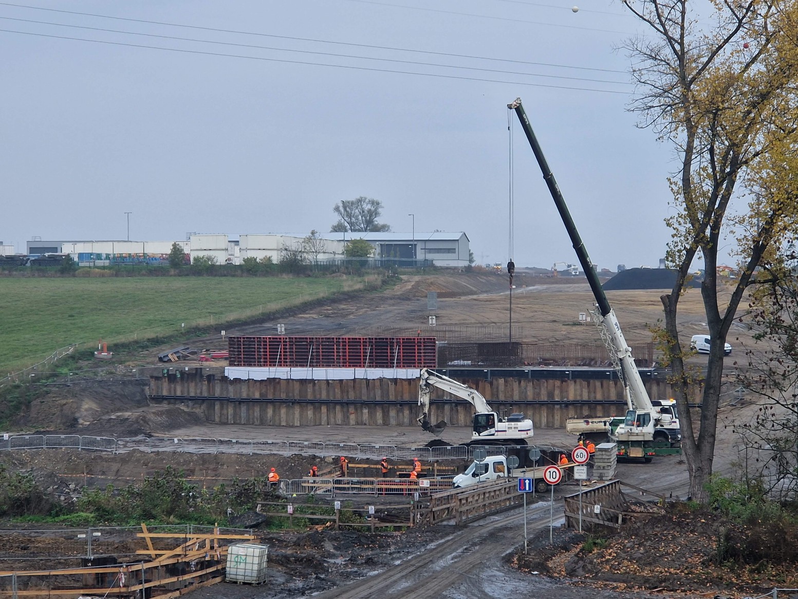Podle Ivety Stočkové z Eurovie se nyní kromě zakládání mostních konstrukcí stále překládají sítě a pokračuje se v zemních pracích. „Na stavbě je přítomno 100 lidi a 100 strojů,“ popsala mluvčí vedoucí firmy zhotovitelského sdružení.