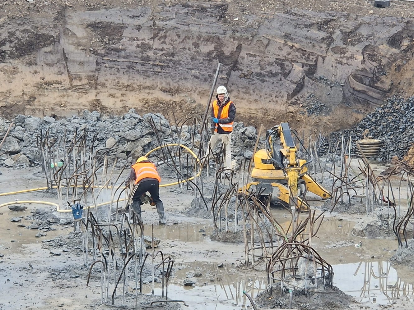 Stojíme na místě jednoho z nich. Dělníci armují základy estakády přes Říčanský potok, která naváže na Dubečský tunel dlouhý 250 metrů. Další hloubený tunel pak bude u Říčan.