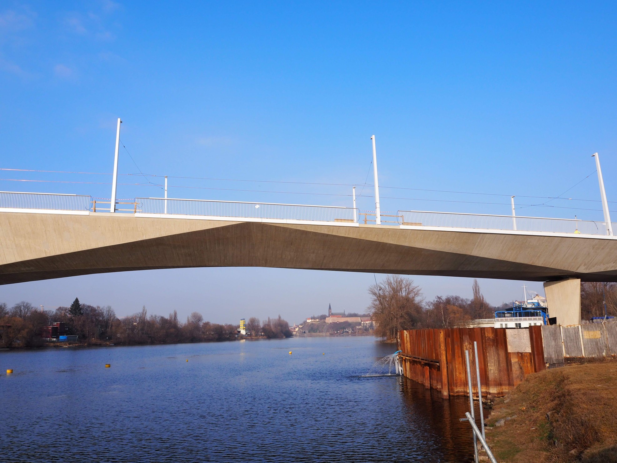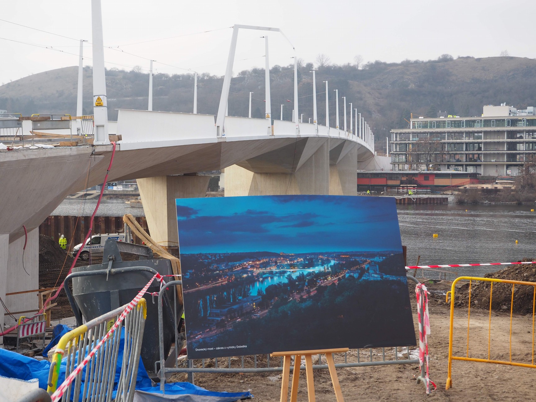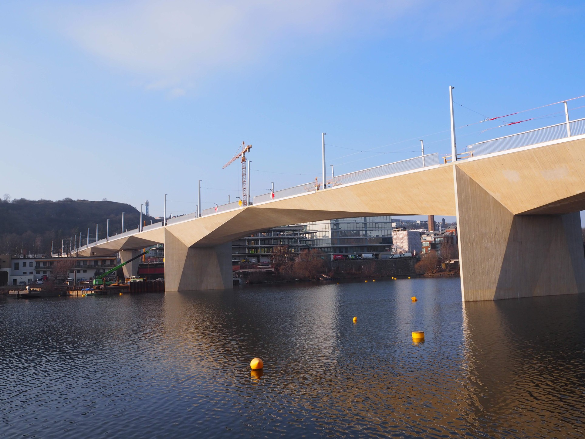 Velmi složité zde byly i geologické podmínky při založení mostu, logistika výstavby nebo zásobování stavby. Na podolské straně již byly dokončeny stavební práce k napojení mostu na tramvajovou trať. Od soboty 24. ledna se napojování přesune na zlíchovskou stranu.