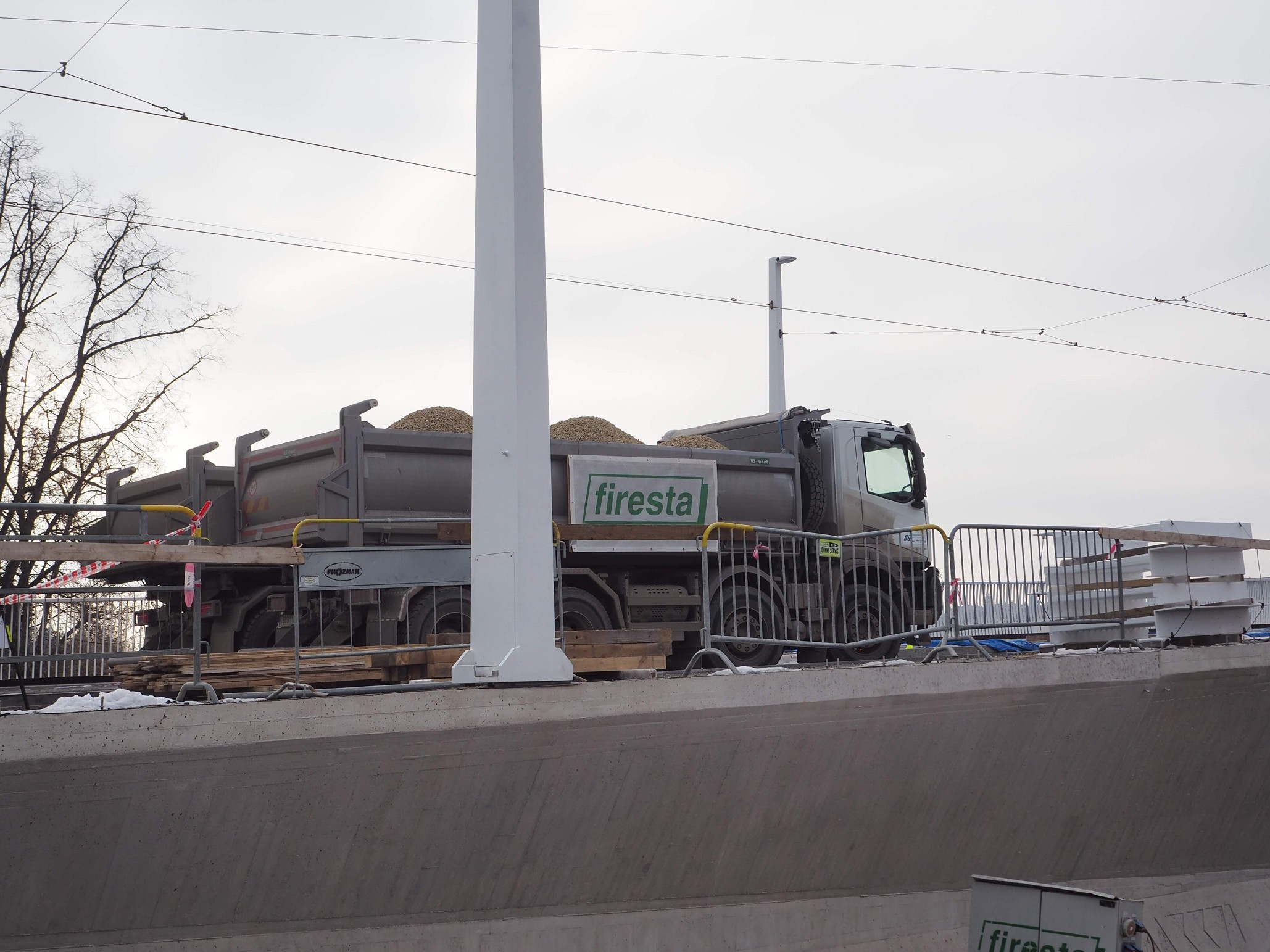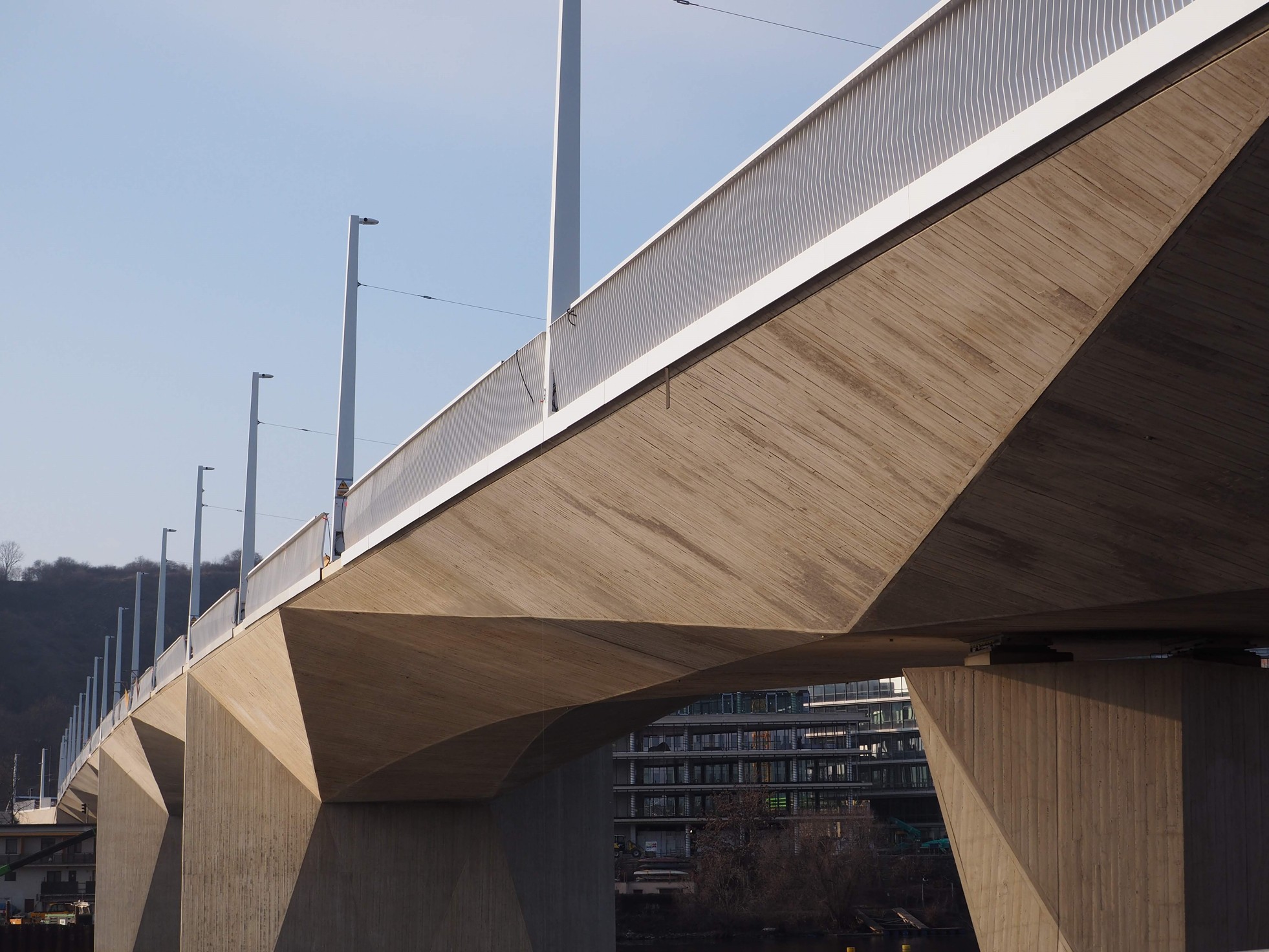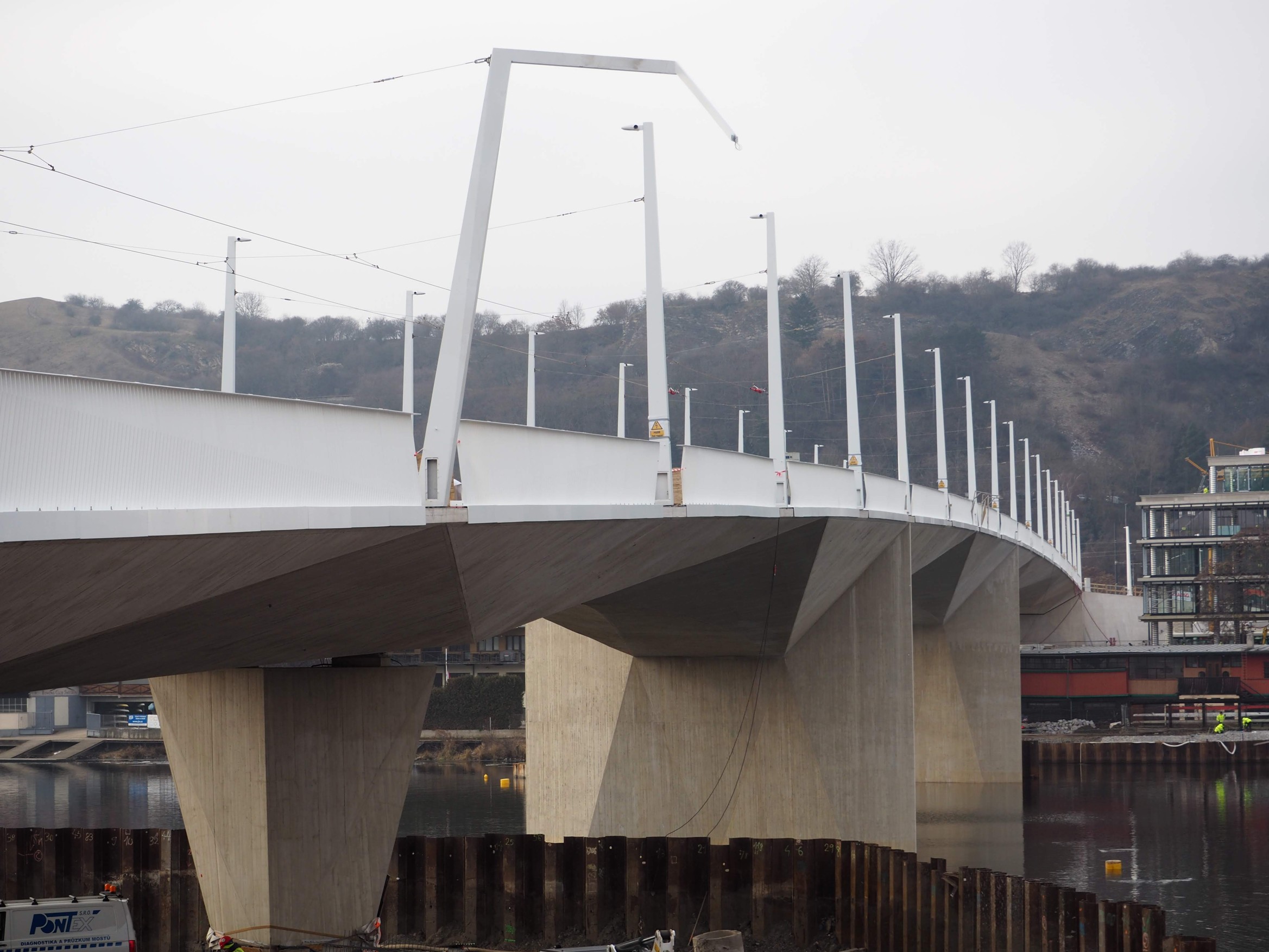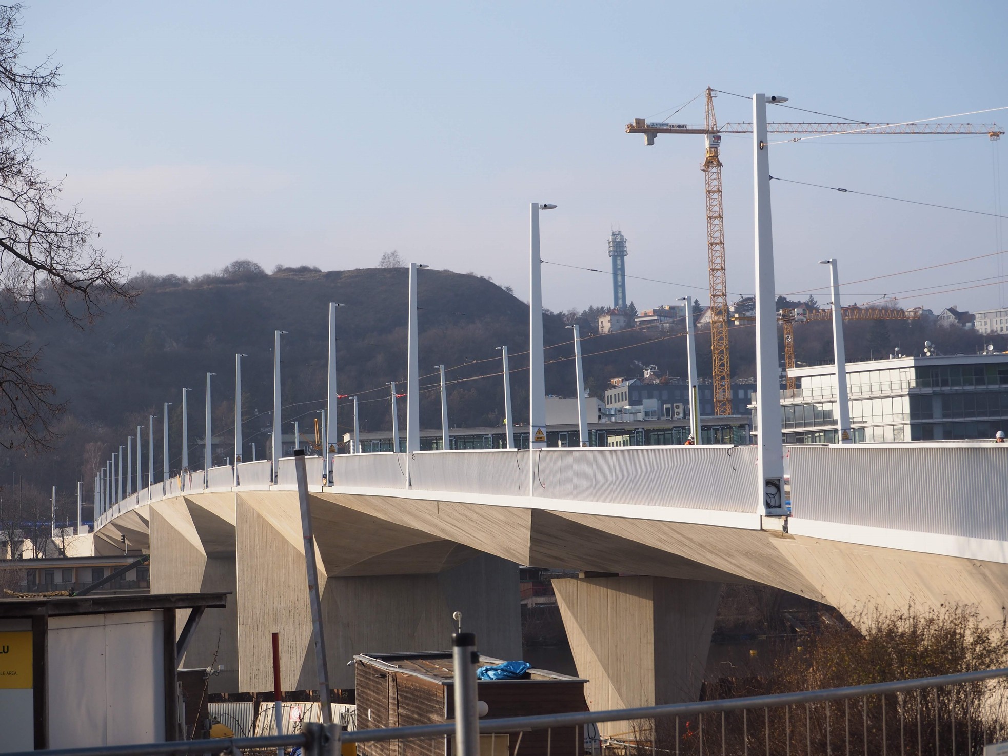 Velmi složité zde byly i geologické podmínky při založení mostu, logistika výstavby nebo zásobování stavby. Na podolské straně již byly dokončeny stavební práce k napojení mostu na tramvajovou trať. Od soboty 24. ledna se napojování přesune na zlíchovskou stranu.