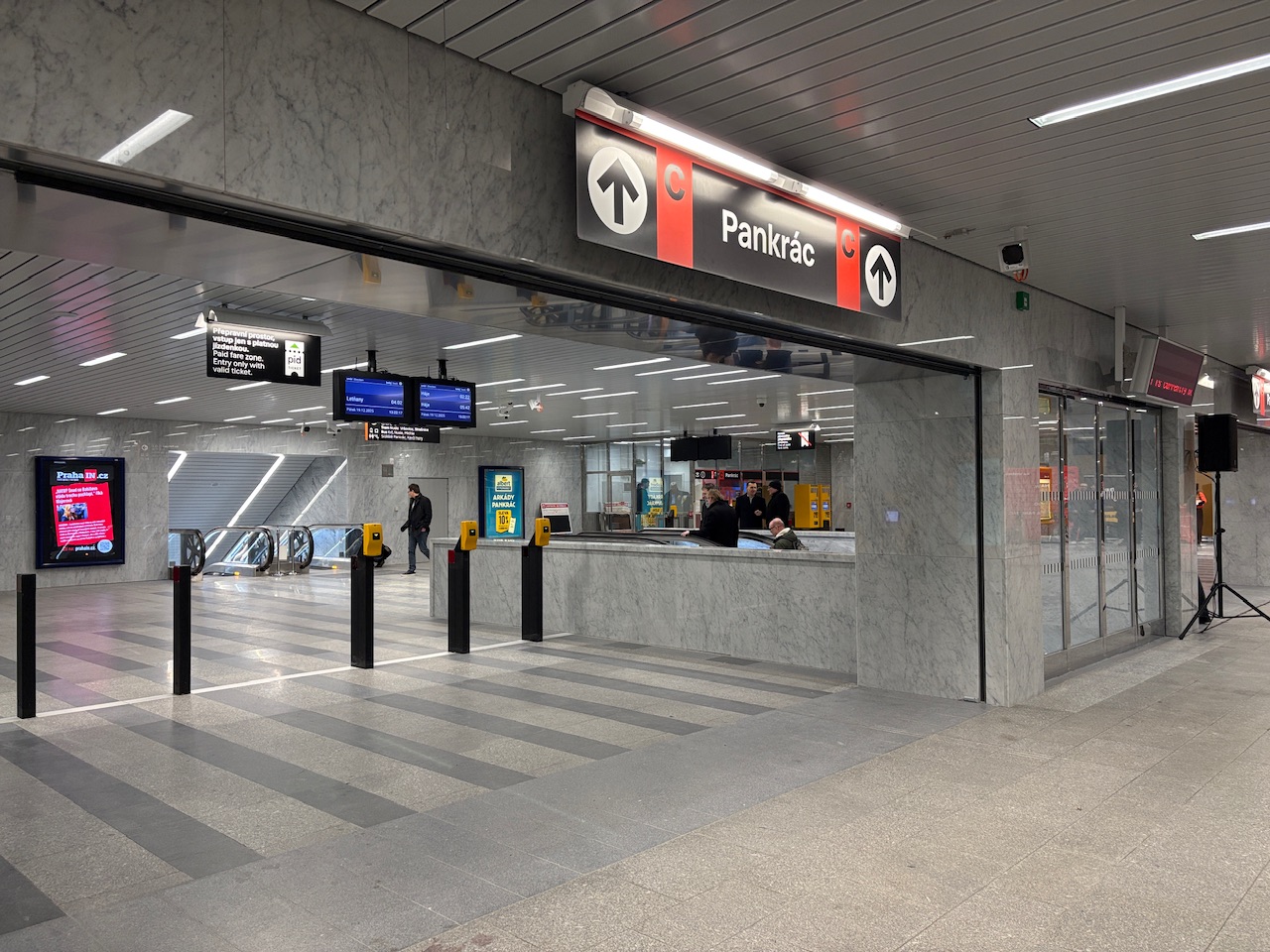 „Ode dneška mohou cestující nově využívat také první část podchodu pod ulicí Na Pankráci, který přímo spojuje vestibul stanice s nástupišti tramvajových zastávek. Vzhledem ke zprovoznění stanice v předtermínu budou na některých místech ještě probíhat dokončovací práce, pouze v lokálních záborech a bez zásadního dopadu na provoz. Dokončeny budou v průběhu ledna 2026,“ uvedl Dopravní podnik hl. m. Prahy v tiskové zprávě.