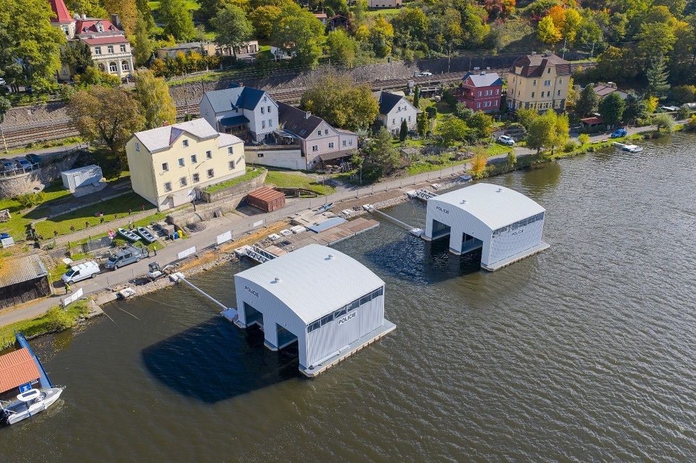 Policie v Ústí nad Labem dostala nové zázemí pro svá plavidla. Dvě plovoucí garáže, z nichž každá pojme dvě plavidla do délky 10 metrů, byly zkompletovány v přístavu Vaňov. Následně byly pomocí tlačného remorkéru dopraveny k poříčnímu oddělení v městské části Brná.