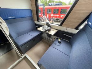 „Do Ostravy jsme přivezli zejména bateriový vlak, který už je tady na Ostravsku půl roku v provozu a má najeto 322 tisíc kilometrů, z toho 107 tisíc na baterie. K vidění je i RegioPanter v barvách ODISu a tři vozy ze soupravy ComfortJet, které vyrábíme v konsorciu se Siemens Mobility. Na stánku pak máme trakční motor, který vyrábíme pro naše bateriové vlaky,“ popsal deníku Zdopravy.cz expozici Škoda Group její mluvčí Jan Švehla.