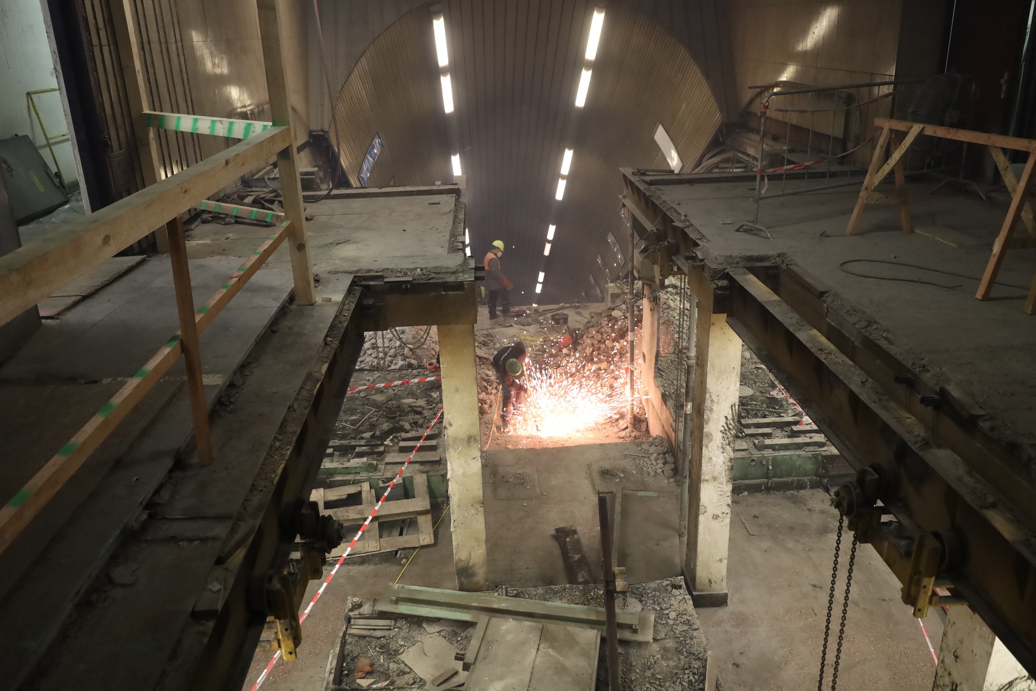 „Dále v celém rozsahu stavby probíhají demontáže technologického vybavení jako jsou kabeláže silových a slaboproudých rozvodů, vzduchotechniky a dalších zařízení,“ upřesnil podnik s tím, že veškeré práce včetně ražby bezbariérového zpřístupnění zatím probíhají podle harmonogramu.