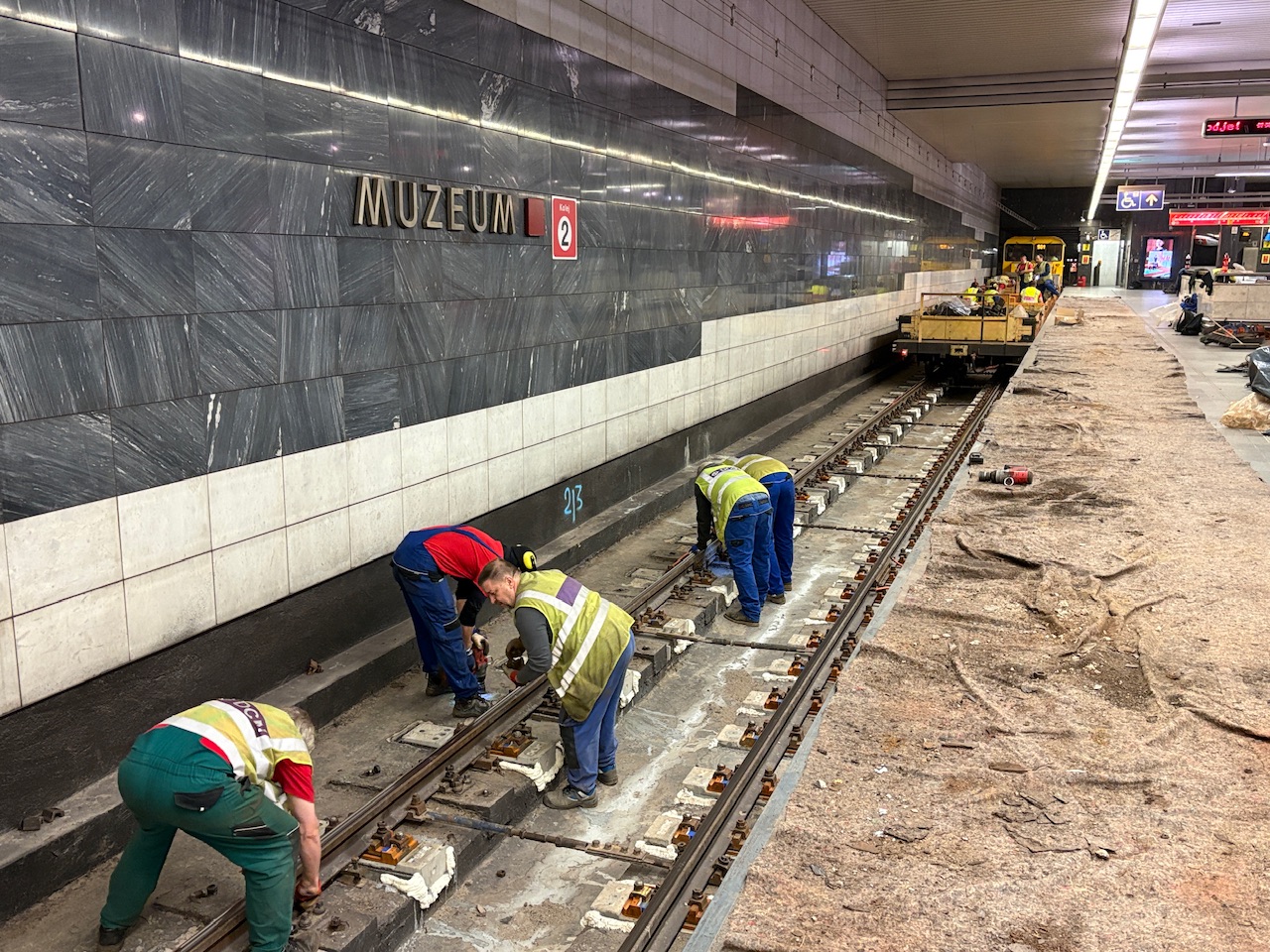 Celkem bude přes prodloužený víkend vyměněno 178 pražců, starých přes 50 let. Pochází ještě z doby výstavby nejstaršího úseku pražského metra, tedy z přelomu 60. a 70. let 20. století. Práce probíhají jak v mezistaničním úseku Hlavní nádraží – Muzeum C, tak v samotné stanici Muzeum C.
