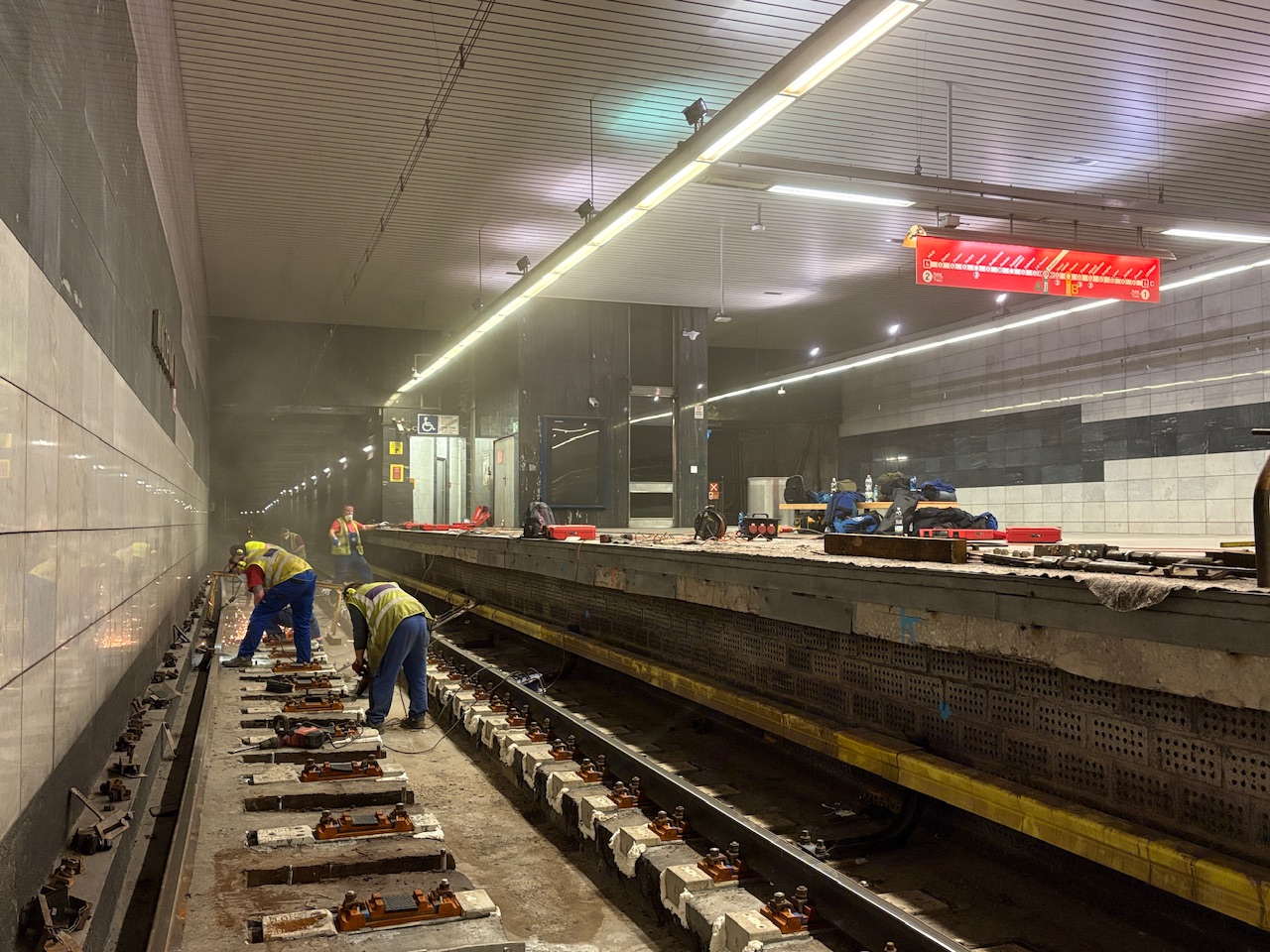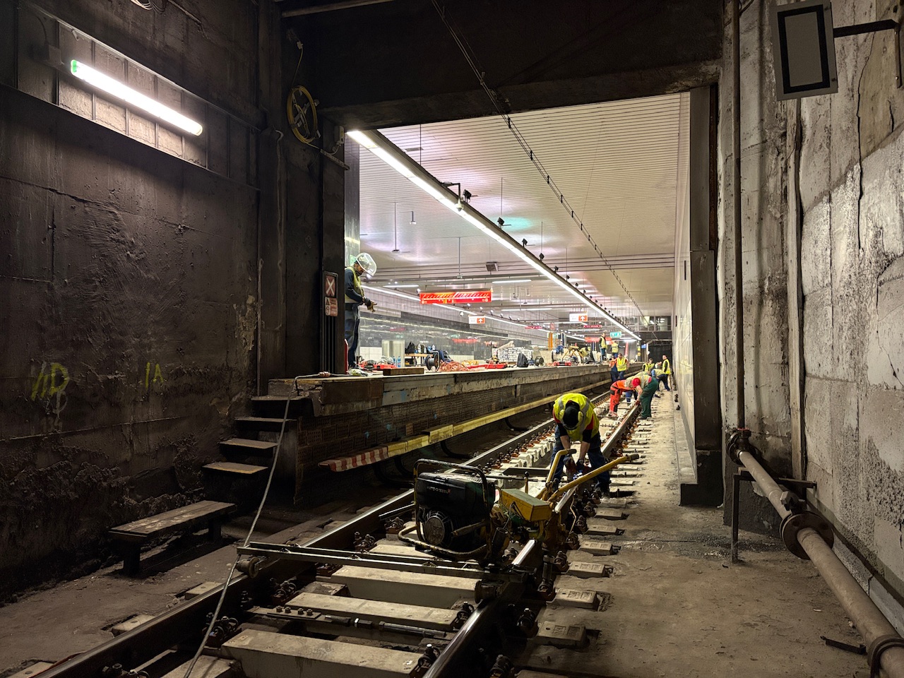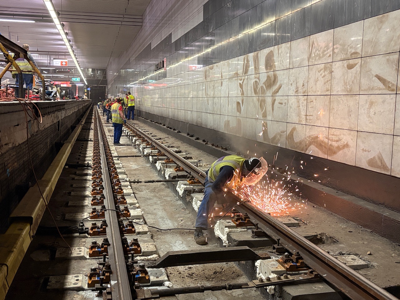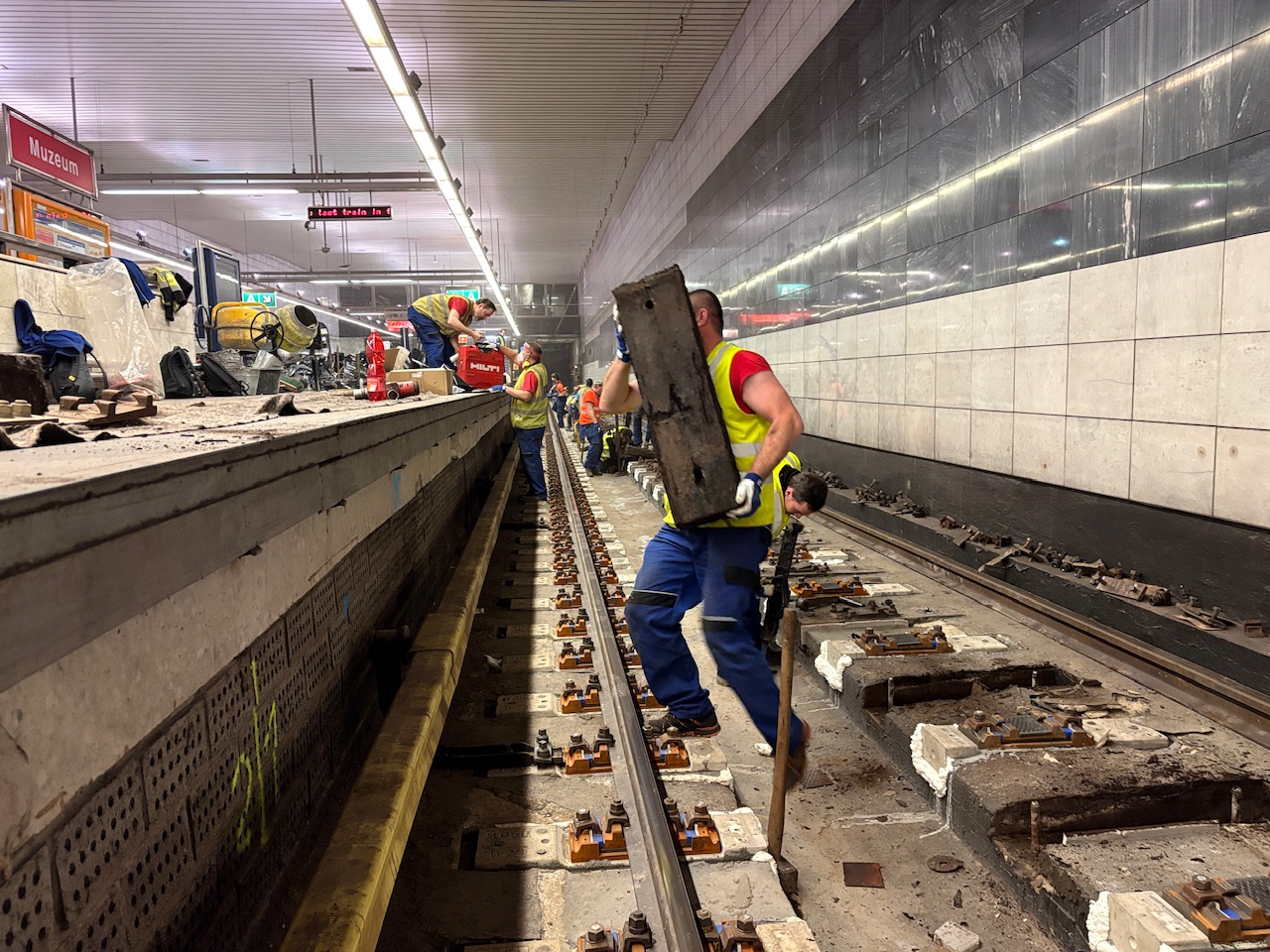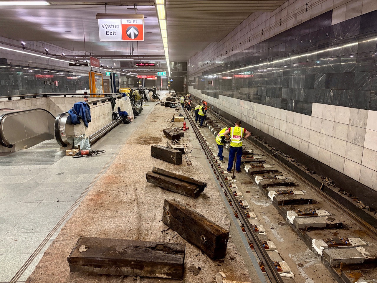 V sobotu 15. listopadu začala na trase C pražského metra třídenní výluka mezi stanicemi Pražského povstání a Hlavní nádraží. Pracovníci Dopravního podniku hl. města Prahy během ní vymění původní dřevěné pražce za betonové.