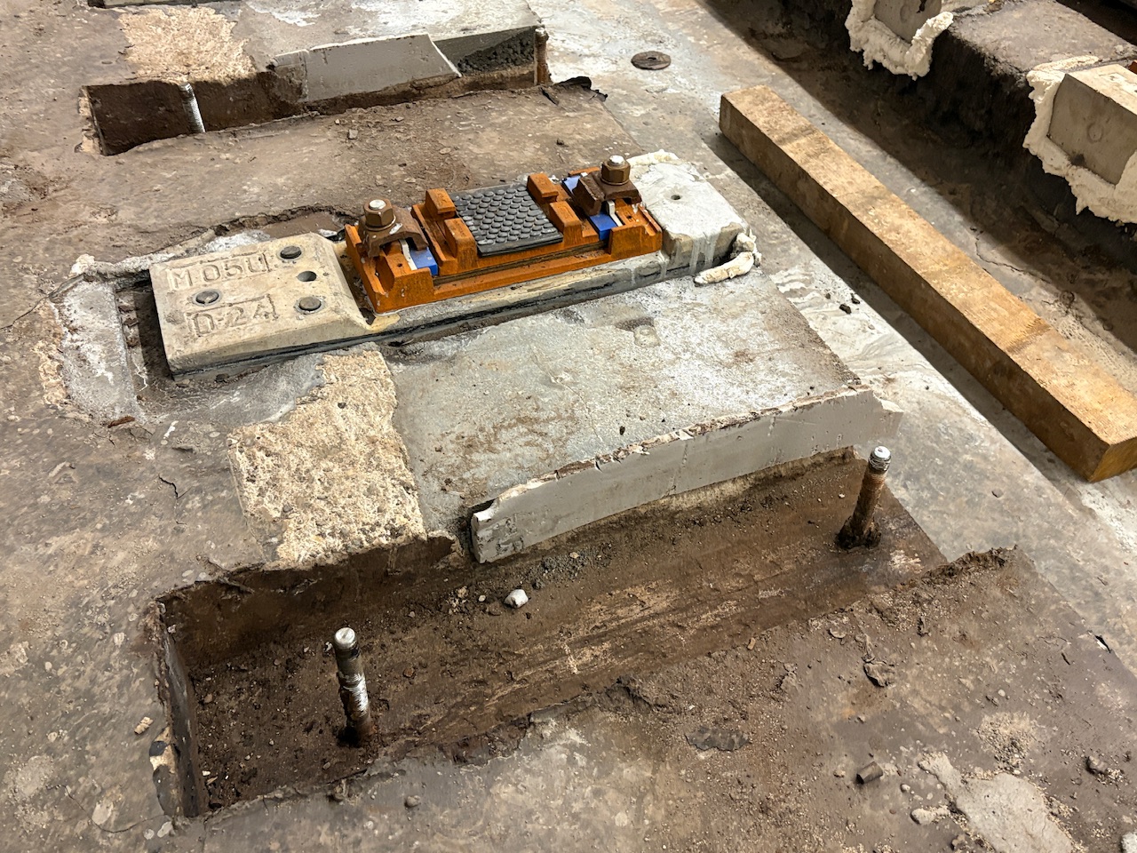 K výměně pražců je nutné rozřezat kolejnice. Ty se následně nadzvednou a posunou tak, aby zůstal přístup k pražcům volný. Následuje demontáž upevnění a nadzvednutí pražců heverem. Desítky let uložené pražce pak dělníci za pomocí palice ručně dostanou ven. Jejich stav odpovídá stáří, jsou již značně ztrouchnivělé. Prostor po pražcích se vyčistí, osadí se nové betonové a ty se zalijí speciální směsí. Tím, že jsme ve staničním úseku, jsou pražce jen pod kolejnicemi. V tunelu musí být pražec rozřezán na tři části.