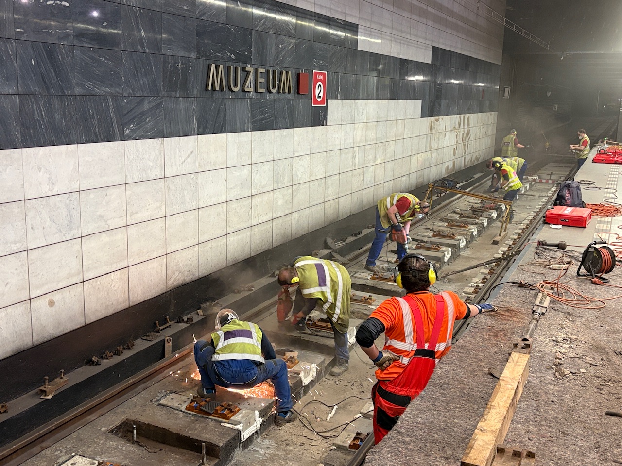 Obrazem: Těžká dřina na Muzeu. Jak se mění pražce v metru