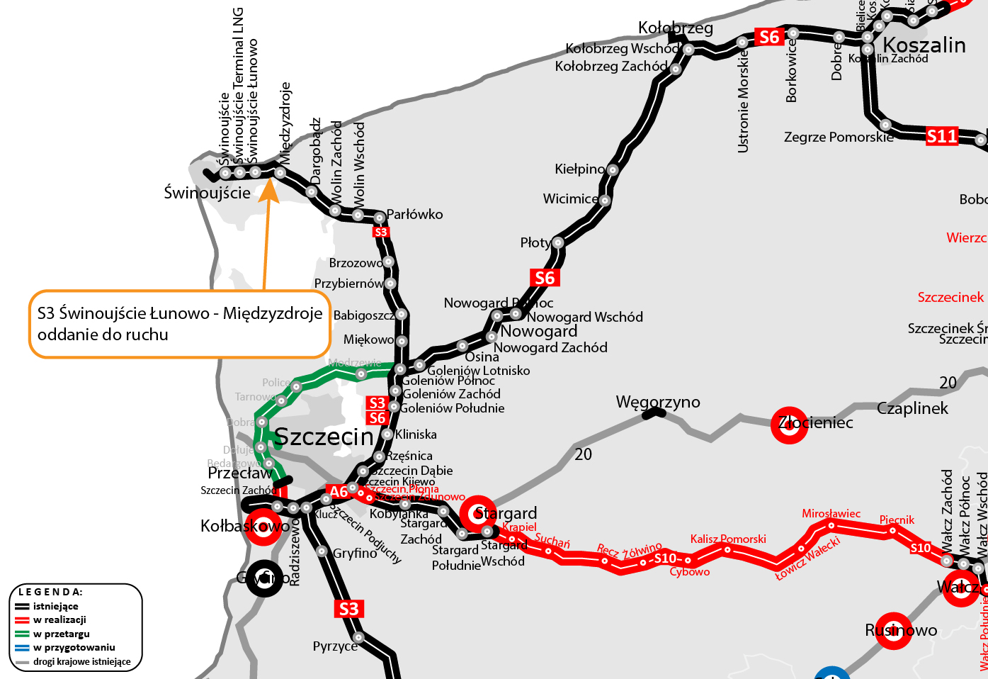 Polská správa silnic a dálnic Generalna Dyrekcja Dróg Krajowych i Autostrad (GDDKiA) dokončila poslední úsek rychlostní silnice S3, která spojuje Česko se Svinoústím na pobřeží Baltského moře. Komunikace je označena jako rychlostní, svými parametry ale prakticky odpovídá dálnici.