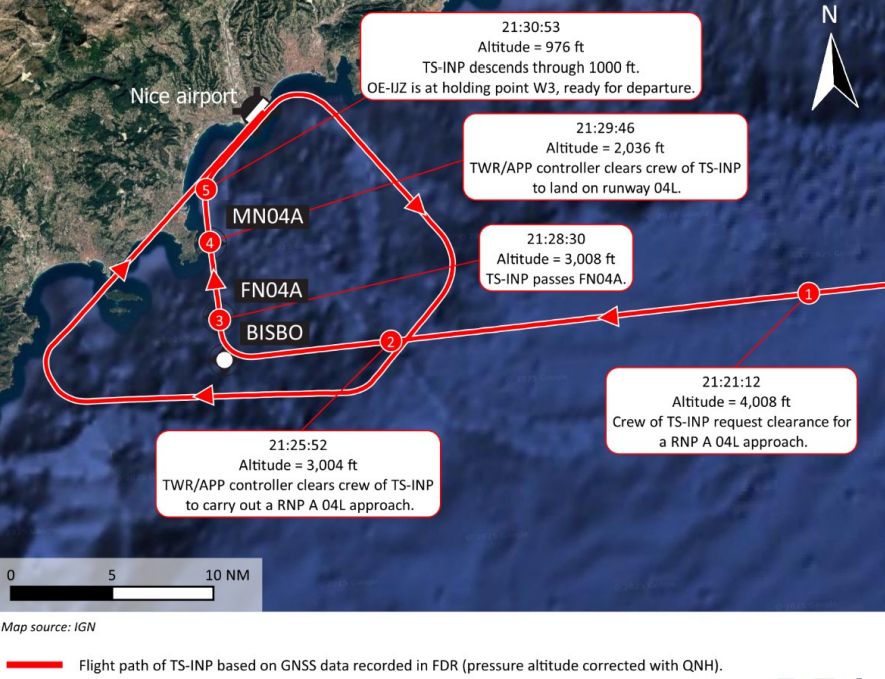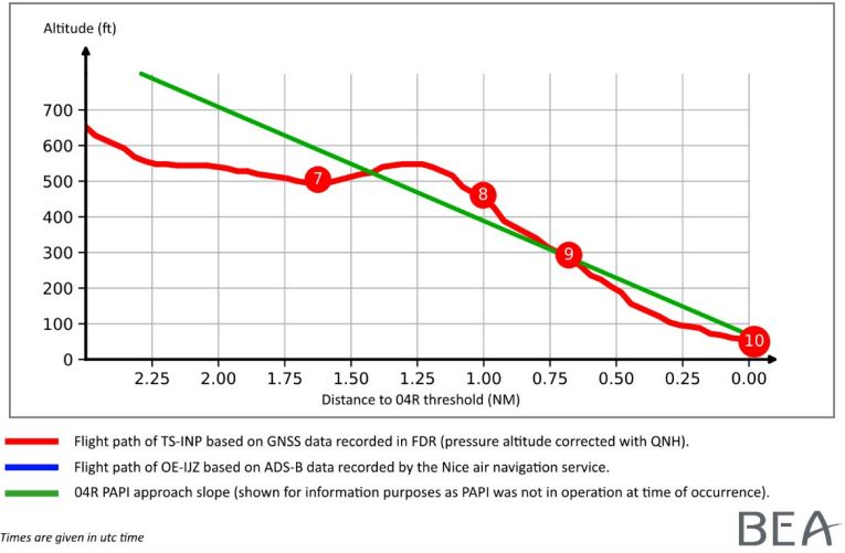 Záznam vážného incidentu dvou letadel v Nice. Foto: BEAZáznam vážného incidentu dvou letadel v Nice. Foto: BEAZáznam vážného incidentu dvou letadel v Nice. Foto: BEA