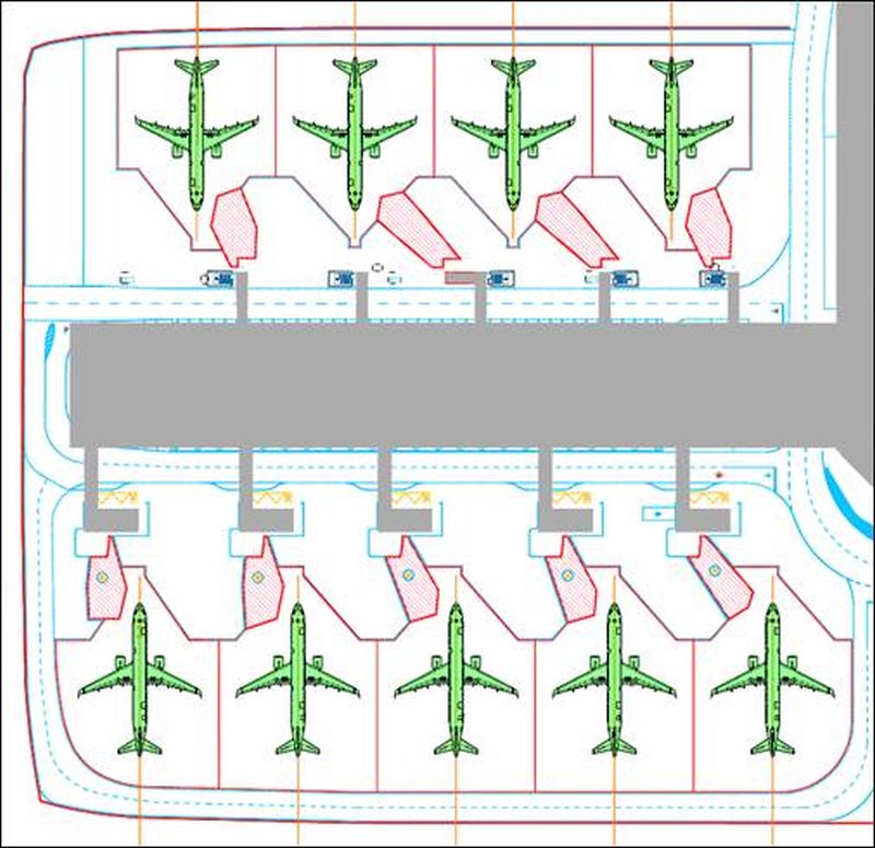 Rekonfigurace vychází vstříc zvětšujícím se letadlům. Nově se bude stát u prstu C kolmo, nikoliv šikmo.