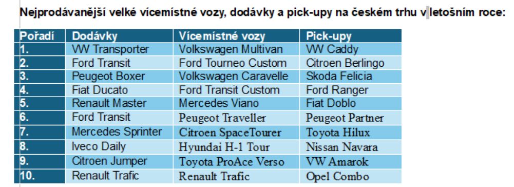 Prodeje ojetých dodávek a velkých vícemístných aut oproti zbytku trhu rostou