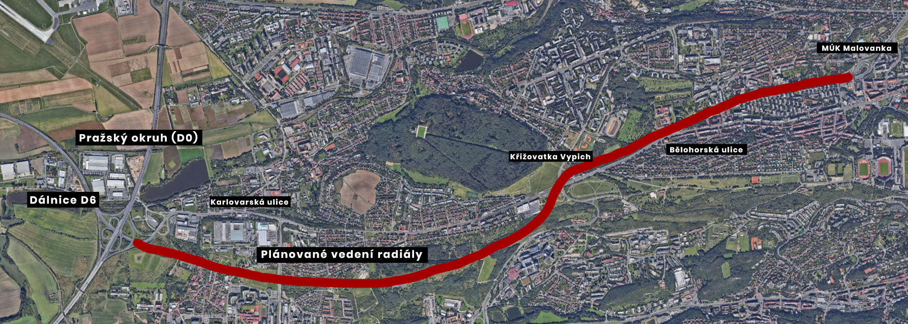 Břevnovská radiála má spojit dálnici D0 a D6 s Městským okruhem přes Řepy a Vypich.