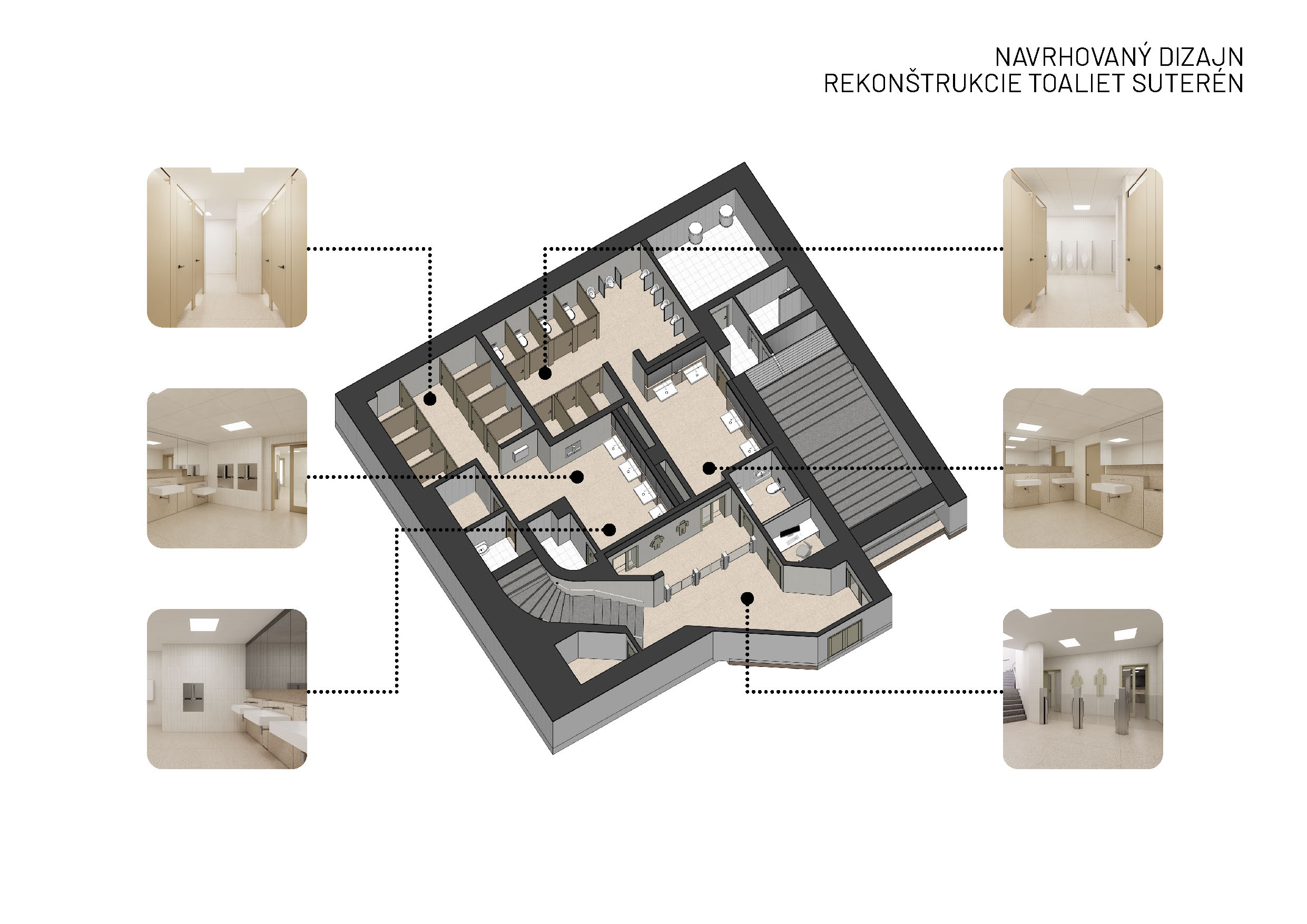 Projekt počítá s vybudováním nových toalet v přízemí a kompletní obnovou zařízení v suterénu. Součástí bude i specializovaná místnost pro osoby se sníženou mobilitou. Modernizace zahrne obnovu technologií, vzduchotechniky či instalaci tzv. antivandal vybavení. Zaveden má být také kontrolovaný vstup přes turnikety s možností platby kartou.