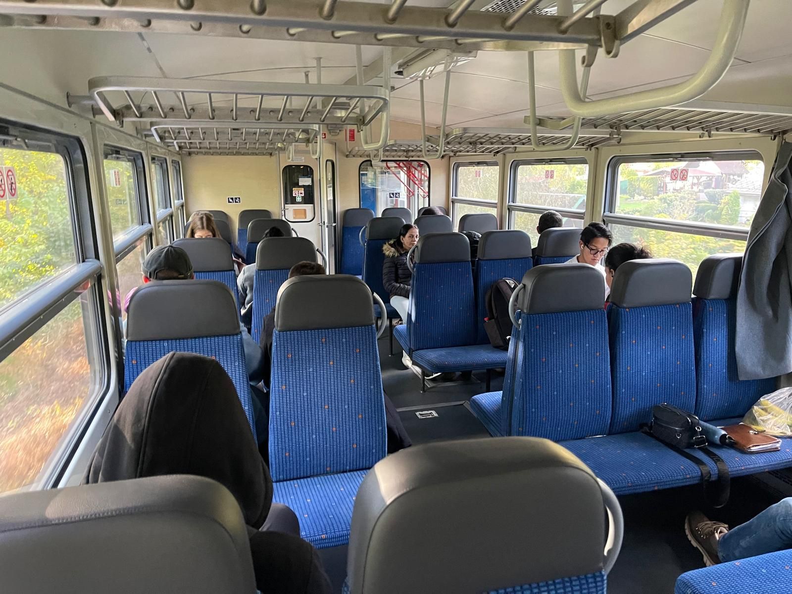 Jestli pak přibyli ještě další z Krušnohoru, který přijel až po nás, už nevidím. Rychle se přesouvám do svého vlaku směrem do Aše, jenž pak ještě pokračuje do Hofu. Stadler RS1, který známe z řady dalších linek Česka, je pořádně natřískaný. Čekáme na lehce zpožděný Krušnohor a následně odvážíme ve 14.40 pro mě překvapivých 55 cestujících. Je plno. Někteří, než aby se mačkali na sedačkách s ostatními, raději stojí na představku.