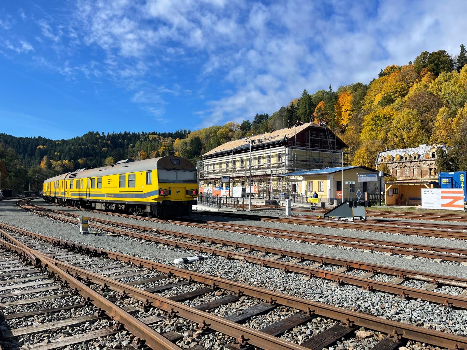 A na další koleji je diagnostická souprava Správy železnic. K čemu se používá a kam má namířeno zrovna v této neobvyklé lokalitě? Ptám se ještě z Bečova mluvčího Správy železnic Dušana Gavendy. „Ondro, ‚ulovil‘ jste diagnostickou jednotku pro nedestruktivní zkoušení kolejnic (DJ NDT). Úkolem této jednotky je prostřednictvím ultrazvukové metody a metody vířivých proudů odhalovat skryté vady kolejnic, které by mohly ovlivnit provozuschopnost. Zajišťuje nedestruktivní zkoušení kolejnic zejména na hlavních kolejích celostátní dráhy (v četnostech podle vyhlášky 177/1995 Sb., kterou se vydává Stavební a technický řád drah), v současné době se pohybuje v oblasti severozápadních Čech. V Bečově nad Teplou se Vám ji zrovna podařilo zachytit při technologické jízdě bez měření,“ reaguje velmi rychle Dušan Gavenda.