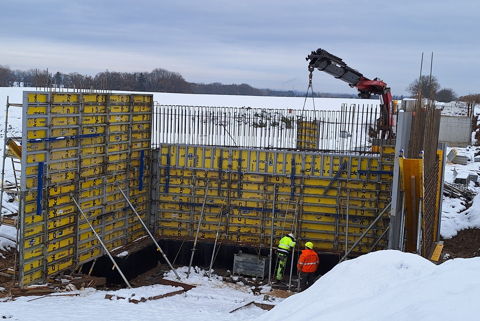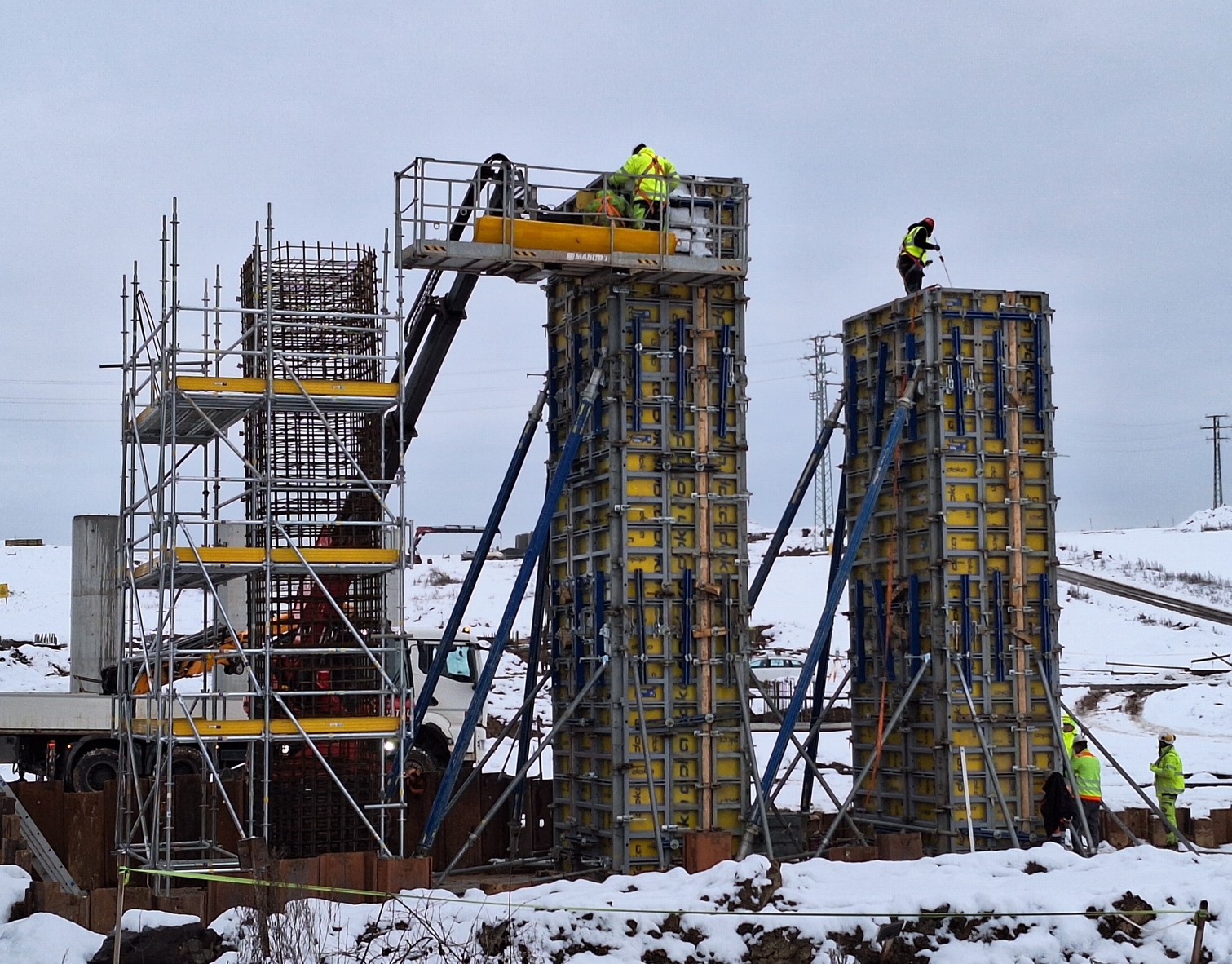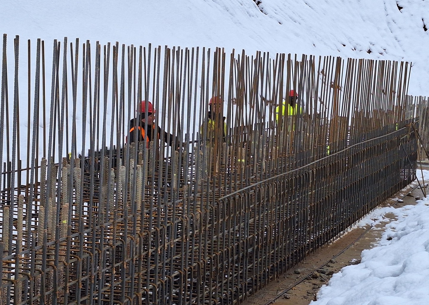 Hlavní činnost se teď soustřeďuje na zakládání mostů na trase. Probíhá vázání ocelových výztuží, instalace bednění, připravují se betonáže mostních pilířů a opěr. Pokračuje také překládání inženýrských sítí.