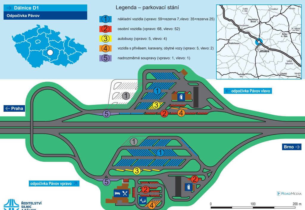 Ve směru z Prahy dojde k rozšíření počtu míst na 92 osobních automobilů (dosud 65), 64 nákladních automobilů (dosud 19), 5 autobusů (dosud 4), 5 karavanů a 1 nadrozměrný náklad. V opačném směru u Jihlavy dojde naopak k redukci míst pro osobní auta ze 120 na 52 a rozšíření počtu míst pro nákladní auta z 13 na 31.