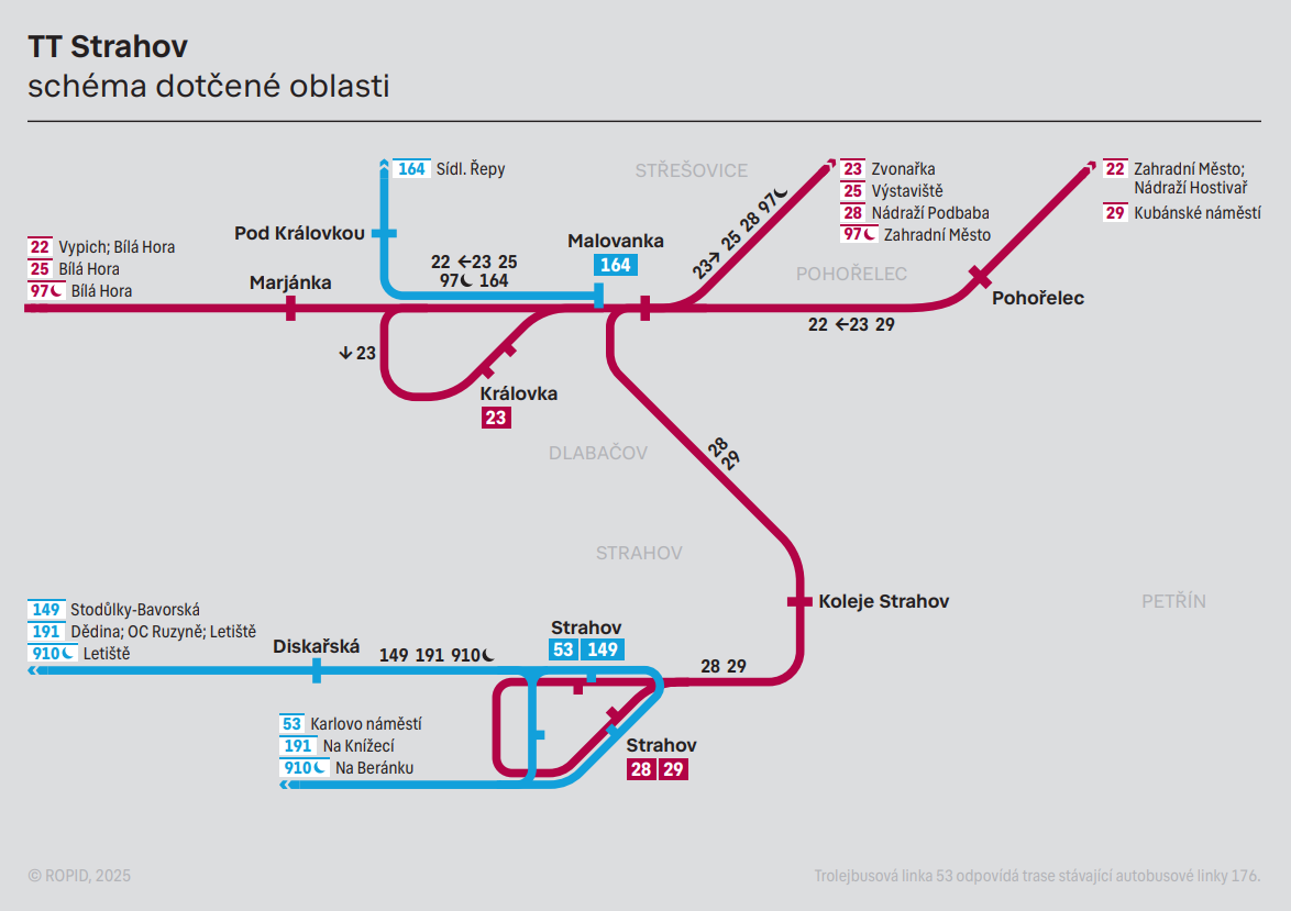 Koleje položené na strahovském kopci přímo propojí Strahov se severní částí centra města, s blízkým metrem na Hradčanské, s Letnou či s náměstím Republiky. Na Strahov pojedou nové linky 28 a 29.