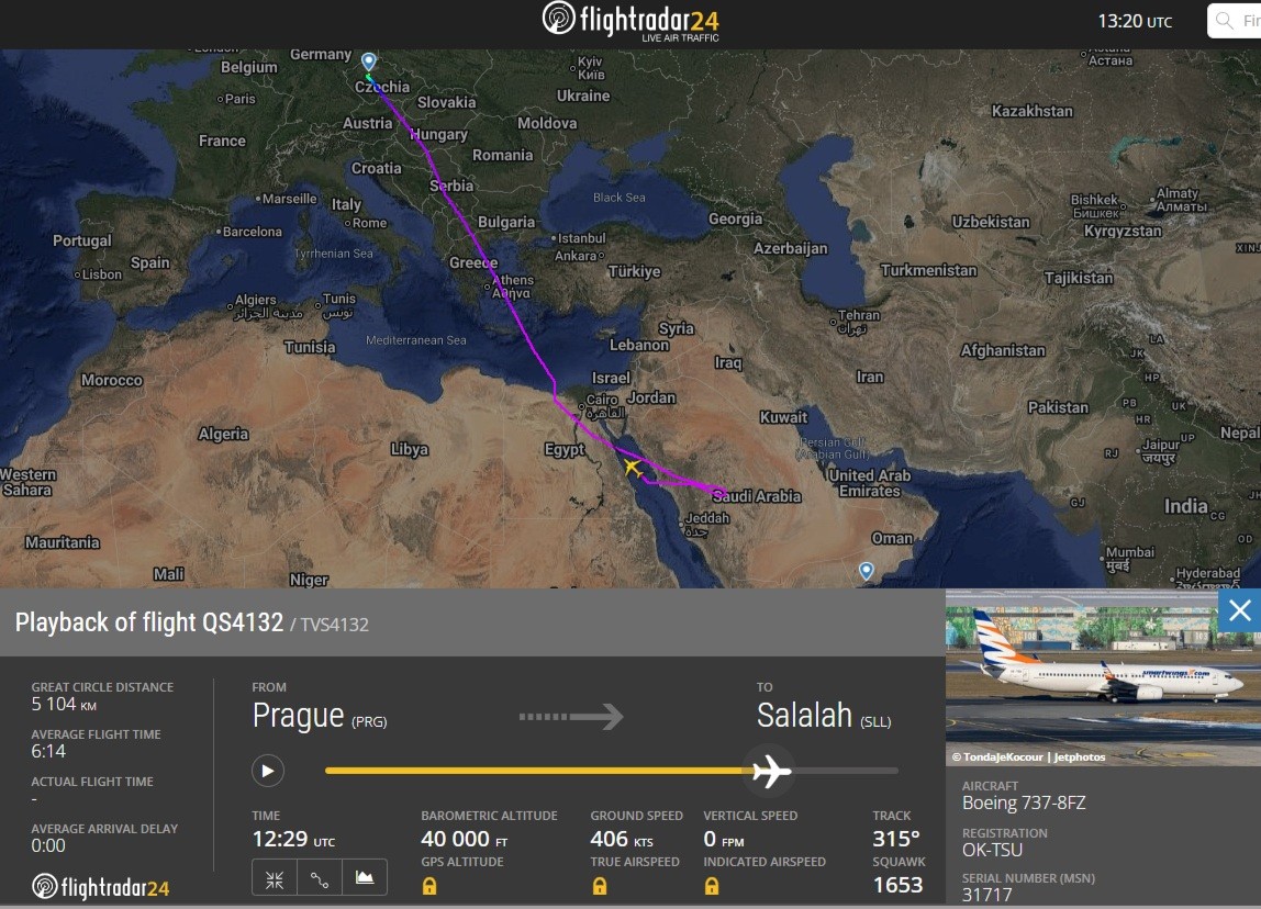 Odklon letounu s imatrikulací OK-TSU z důvodu uzavírky letiště v Salále potvrdila pro deník Zdopravy.cz mluvčí Smartwings Vladimíra Dufková. Řekla, že stroj letěl pro klienty cestovní kanceláře, se kterou aerolinka zůstává v kontaktu.