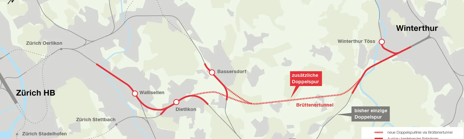 Spolkový správní soud zamítl všechna odvolání proti stavbě, SBB tak nyní mohou začít s posledními fázemi přípravy. Součástí zakázky bude kompletní rozšíření úseku Curych – Winterthur na čtyři koleje. Vznikne nová dvojkolejná trať, která povede v novém tunelu Brüttener. Rozsáhlou modernizací projdou stanice Dietlikon, Bassersdorf, Wallisellen a Winterthur Töss. Předpokládaná hodnota prací je 3,3 miliardy franků (86 miliard korun).