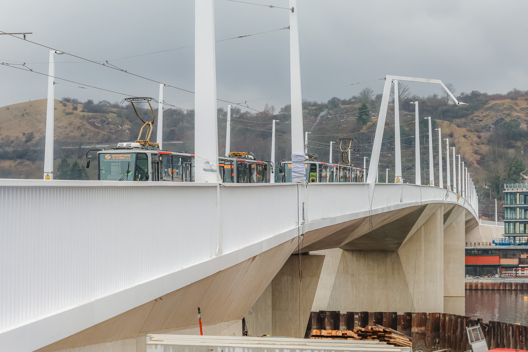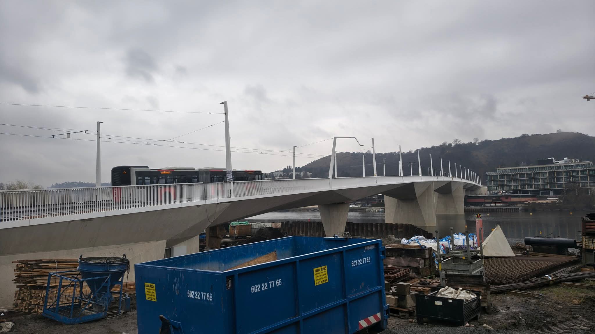Přes most budou jezdit tramvajové linky 20 a 21 a také celkem šest autobusových linek. Most by se měl pro pěší, cyklisty a provoz tramvají a autobusů otevřít letos v dubnu, termín dostavby byl už několikrát posunut.