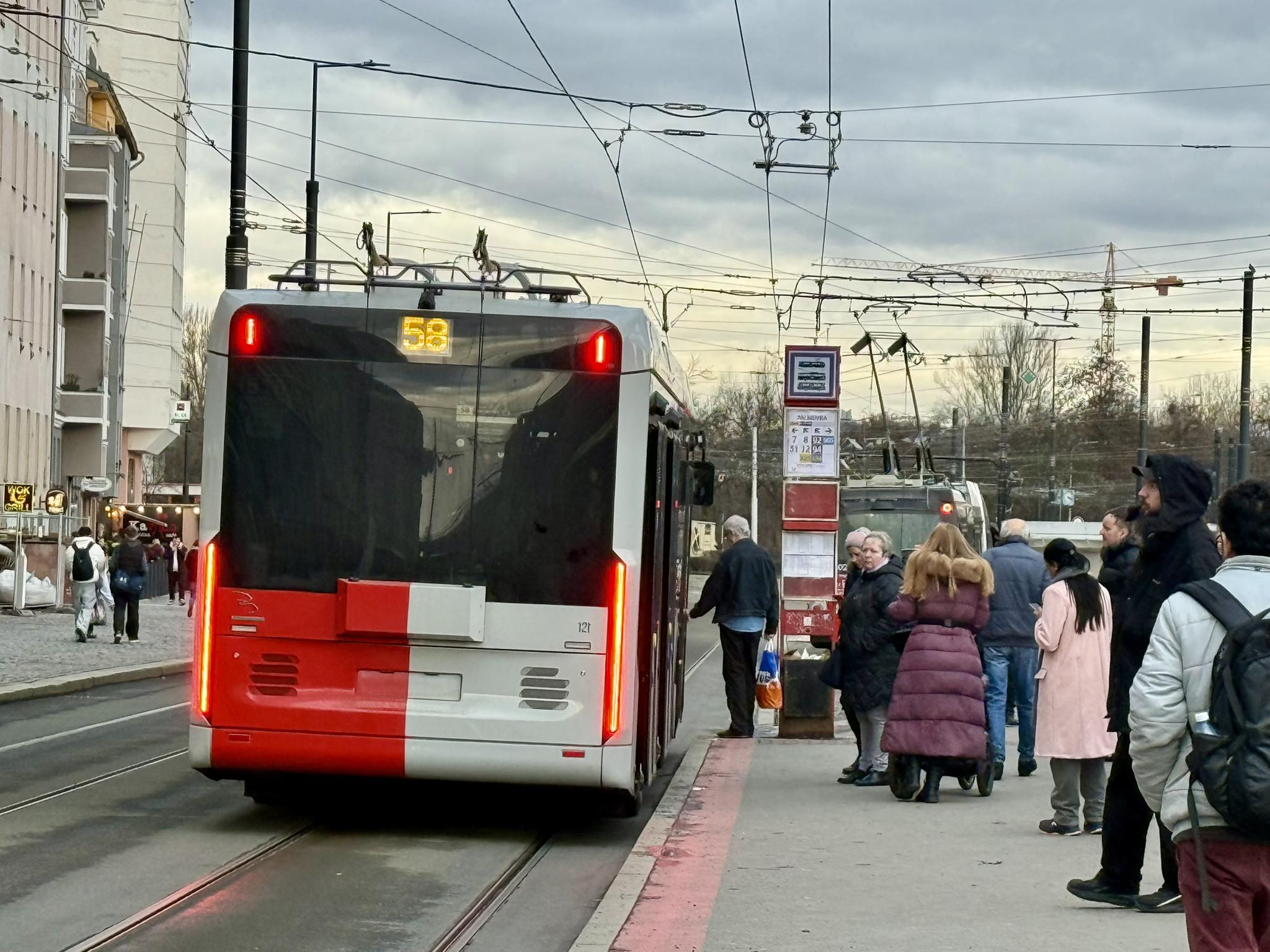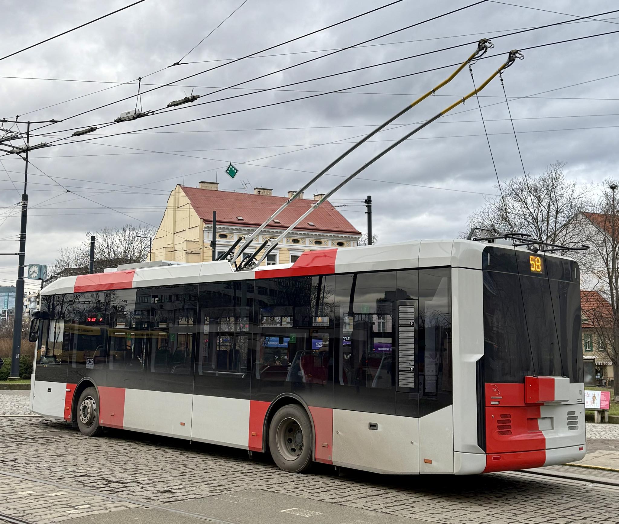 První trolejbus Bozankaya SNG 12T v jednotných barvách PID ve čtvrtek odpoledne zahájil zkušební provoz s cestujícími na lince 58. Jde o první sériový dodaný kus ev. č. 515, který před měsícem dorazil do garáže na Klíčově.